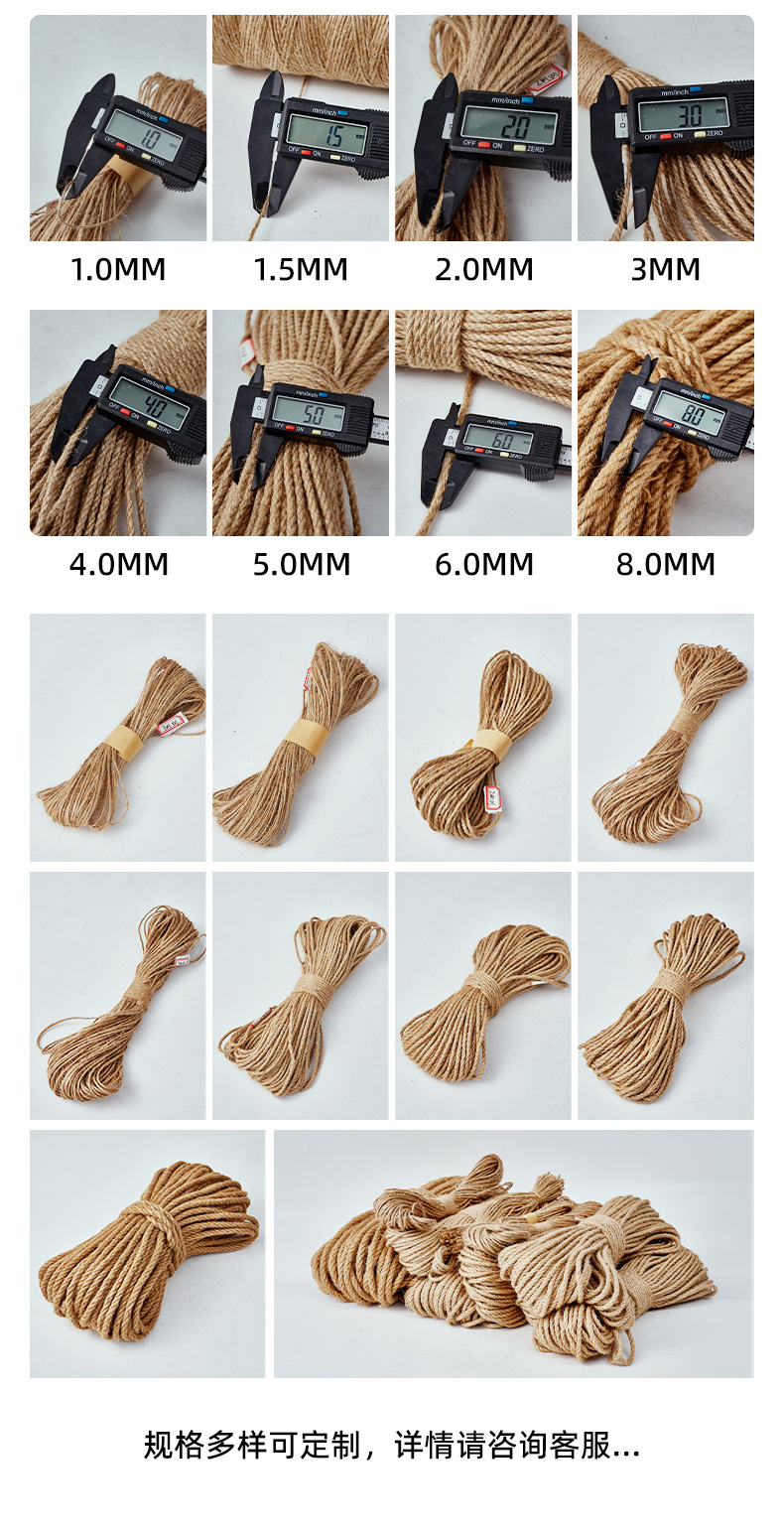 麻绳细绳3mm到22mm 工厂直销 拔河绳 耐用耐磨装饰无油味工艺