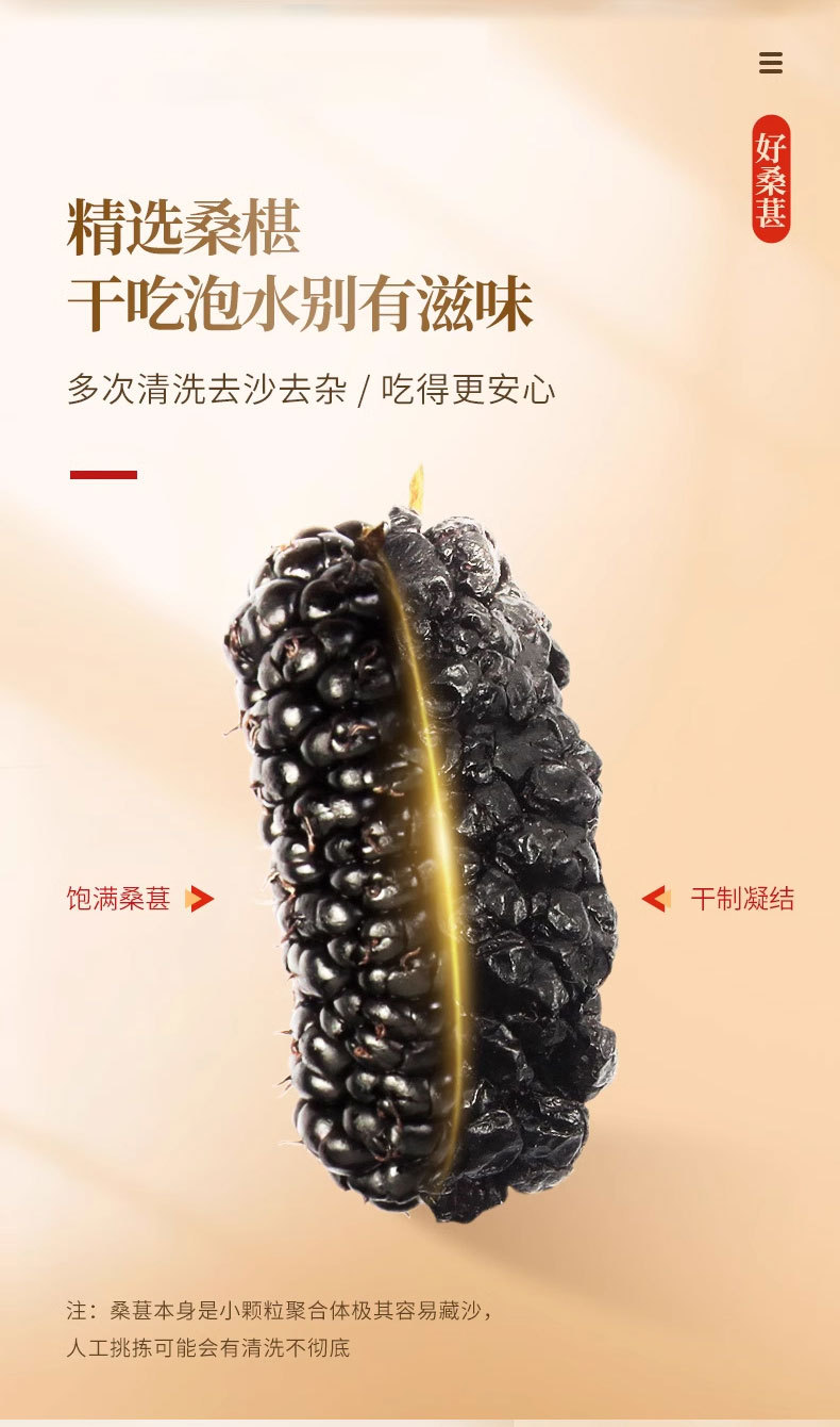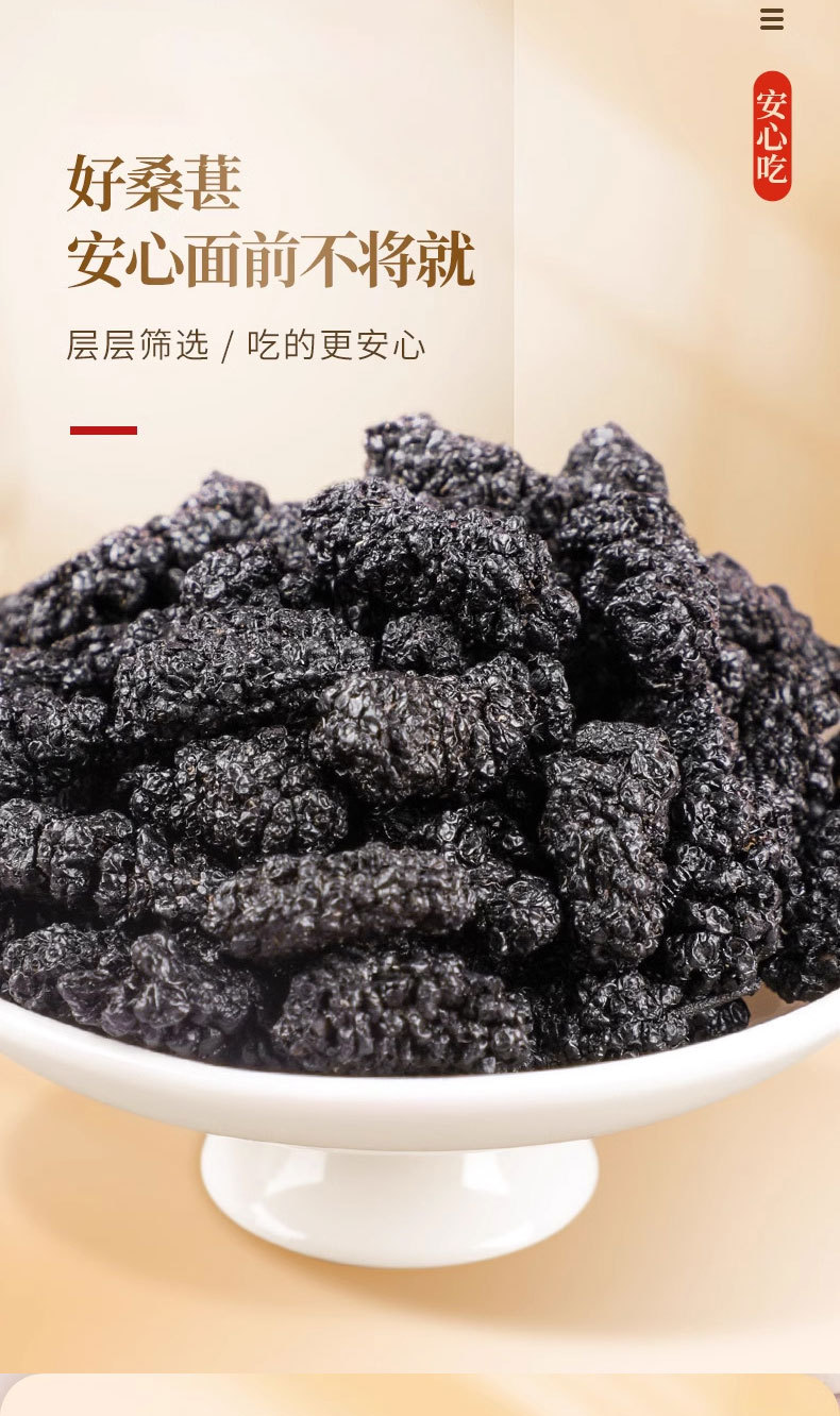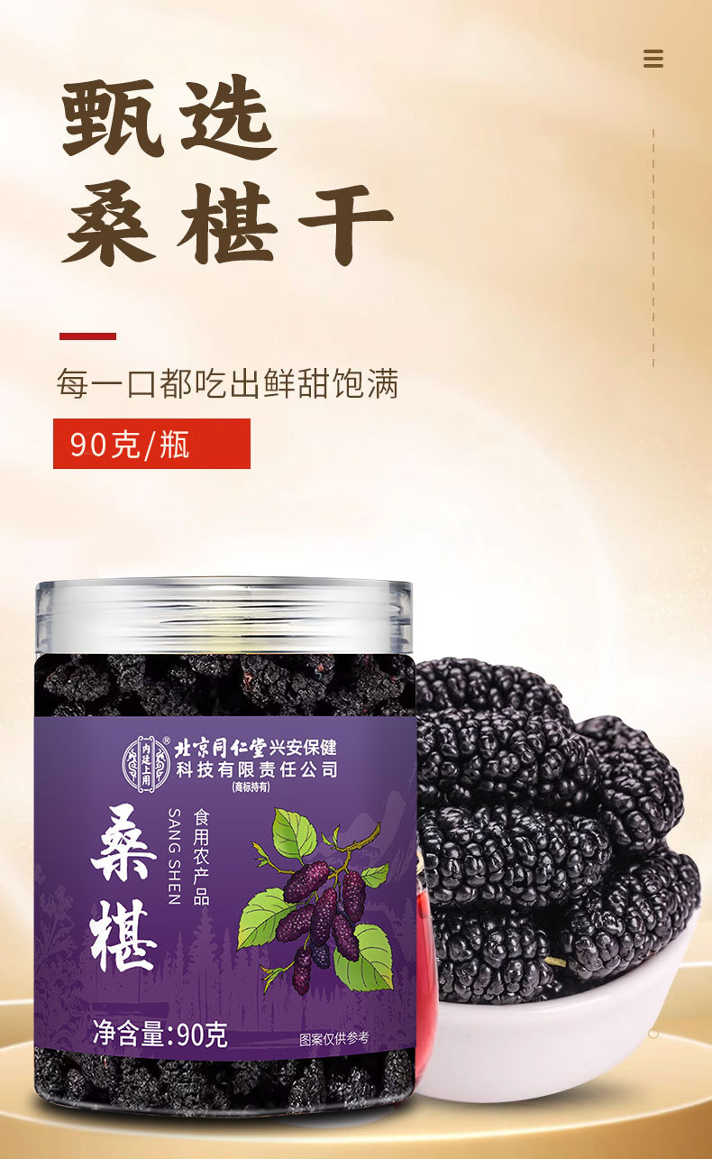 北京同仁堂の水洗い済み新鮮黒桑の実、そのまま食べられる、水に浸して飲む、お茶に淹れる、桑の実の卸売販売。