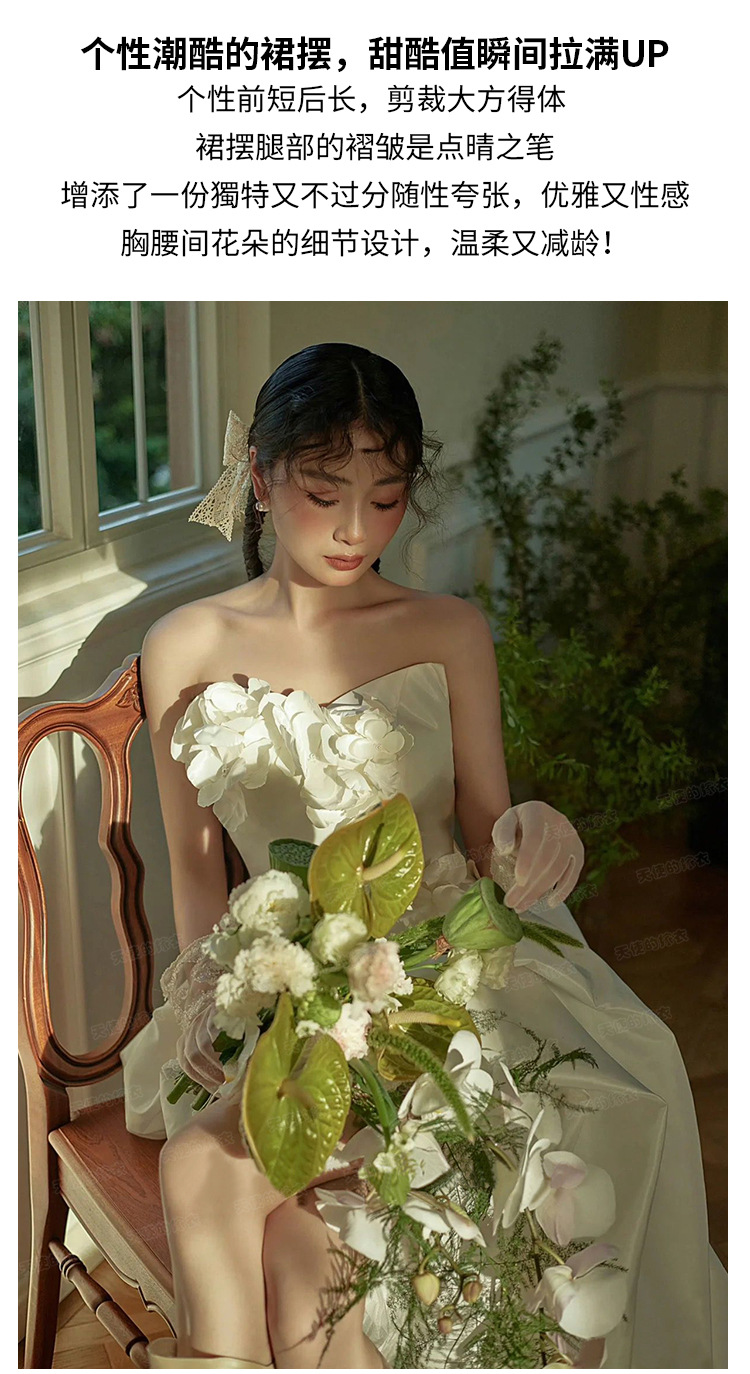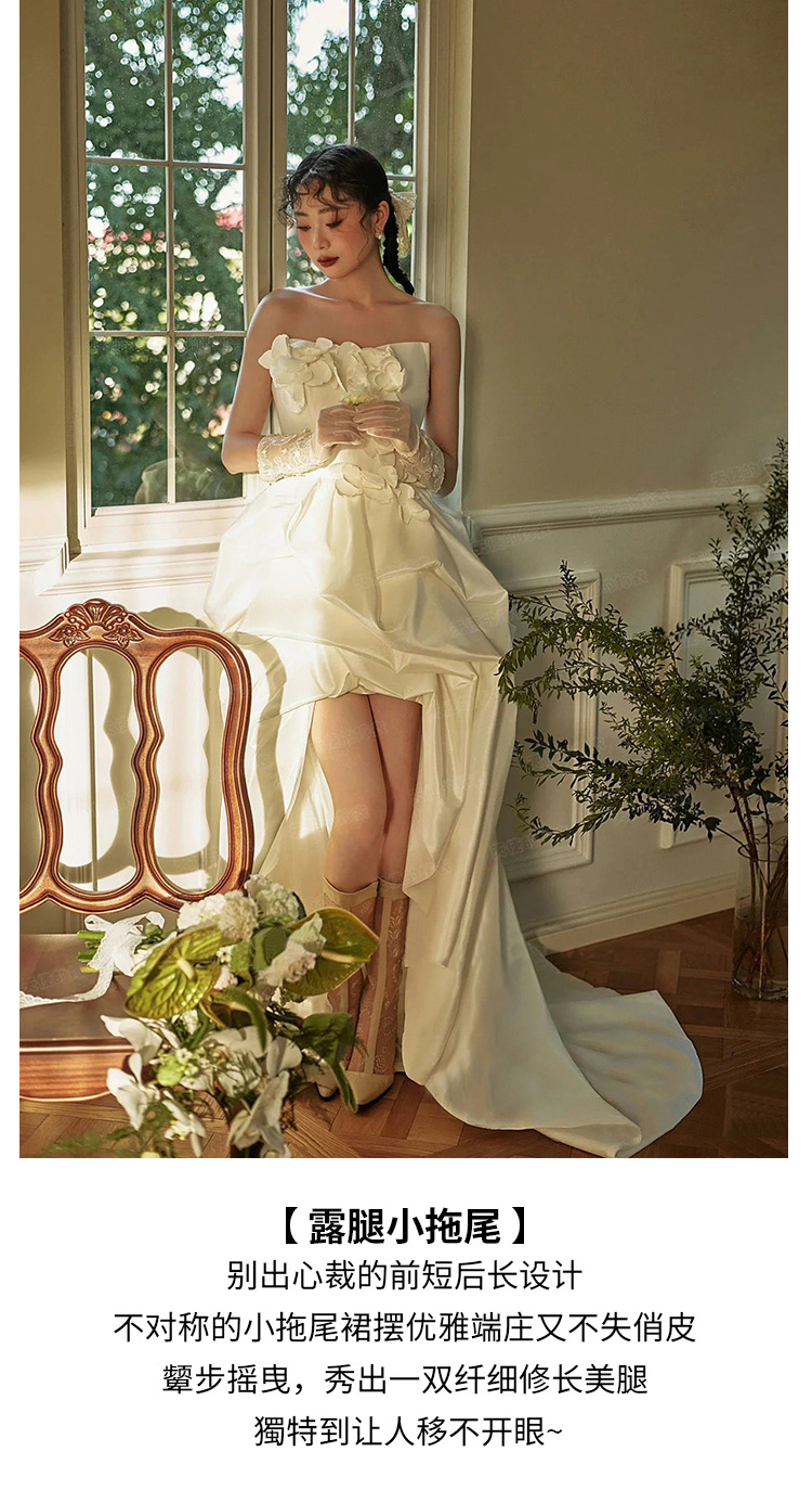 抹胸轻婚纱新娘旅拍外景出门纱迎宾前短后长公主风小个子婚纱礼服
