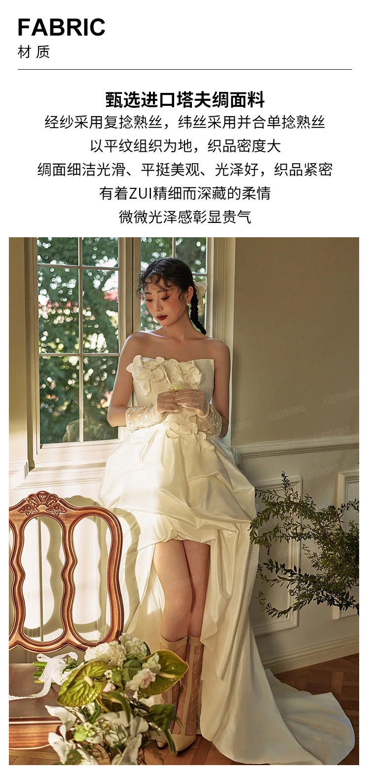 旅拍轻婚纱抹胸缎面订婚外景轻纱礼服领证登记小众晨袍新娘出门纱