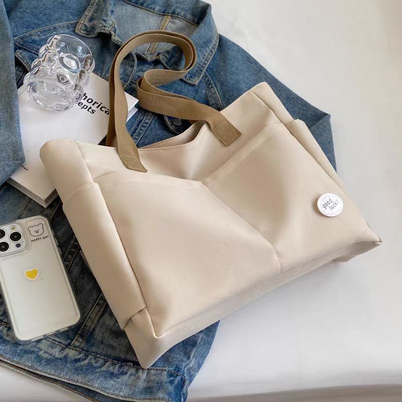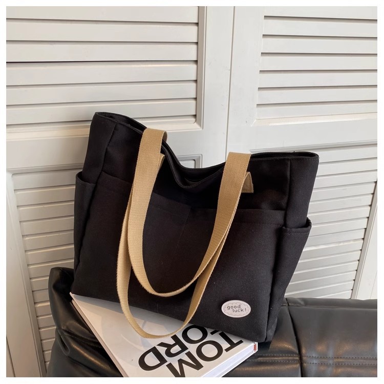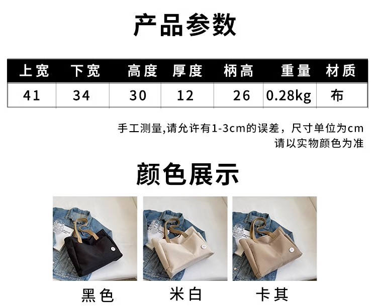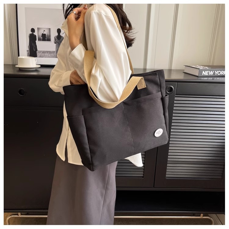 原创设计日系拉链通勤加厚帆布托特包休闲文艺学生简约单肩手提包