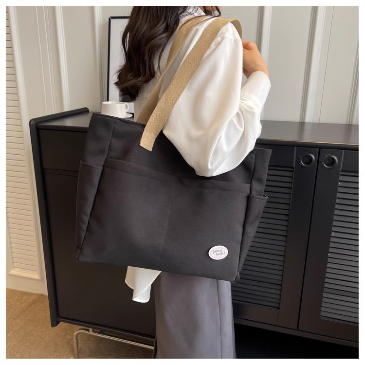 学生の授業では、キャンバスの特包女性シンプル2023新型防水大容量通勤手提げショルダーバッグ
