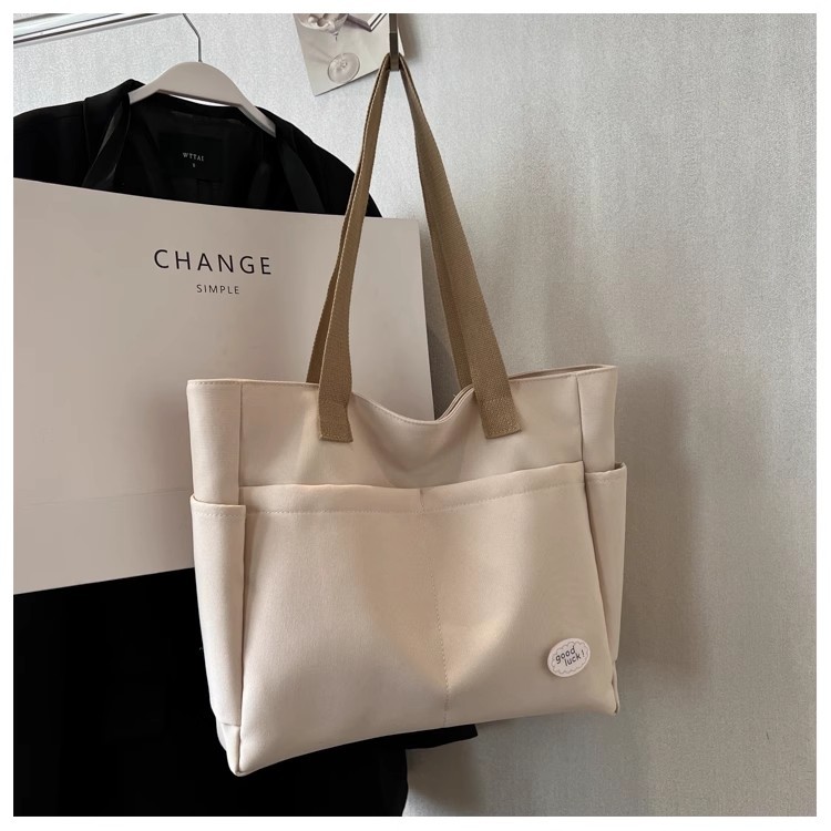 仕事やお出かけに最適な大容量トートキャンバスバッグ、通勤にも万能、文学学生が本を抱えるショルダーバッグ