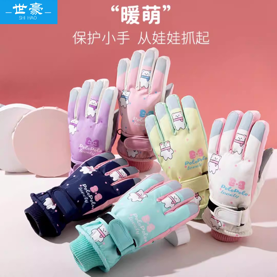 子供用スキー手袋、中型および大型の子供用、厚手、防寒、防水、防風、滑り止め、暖かい、スキー、雪遊び用綿手袋