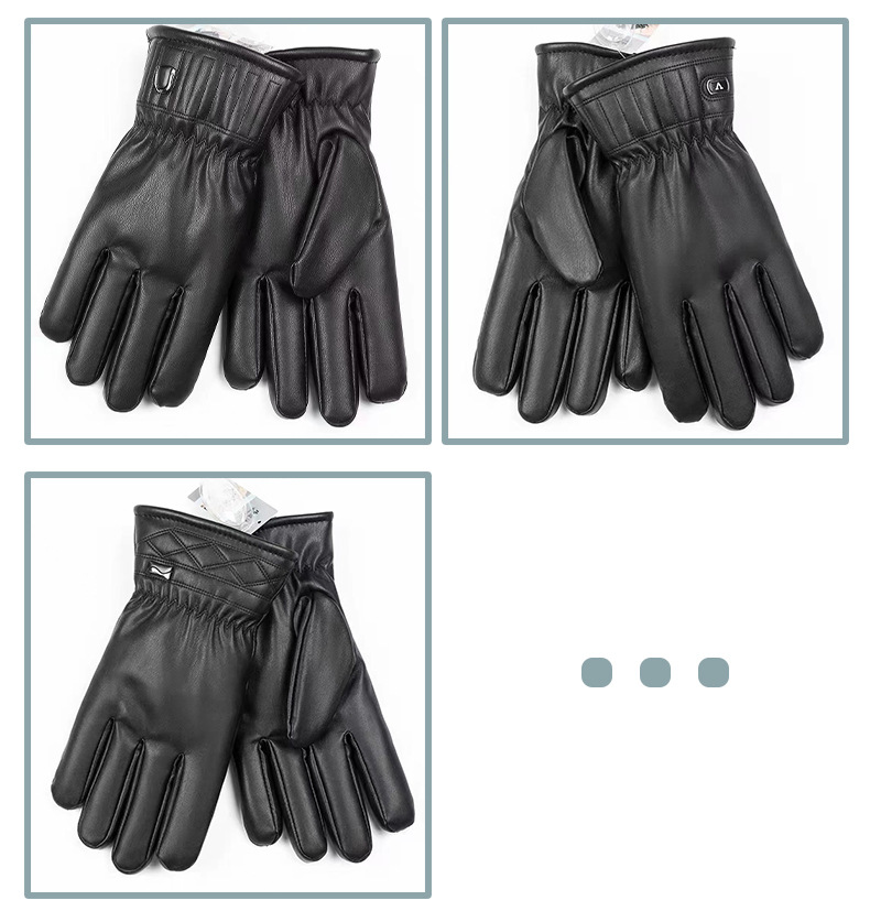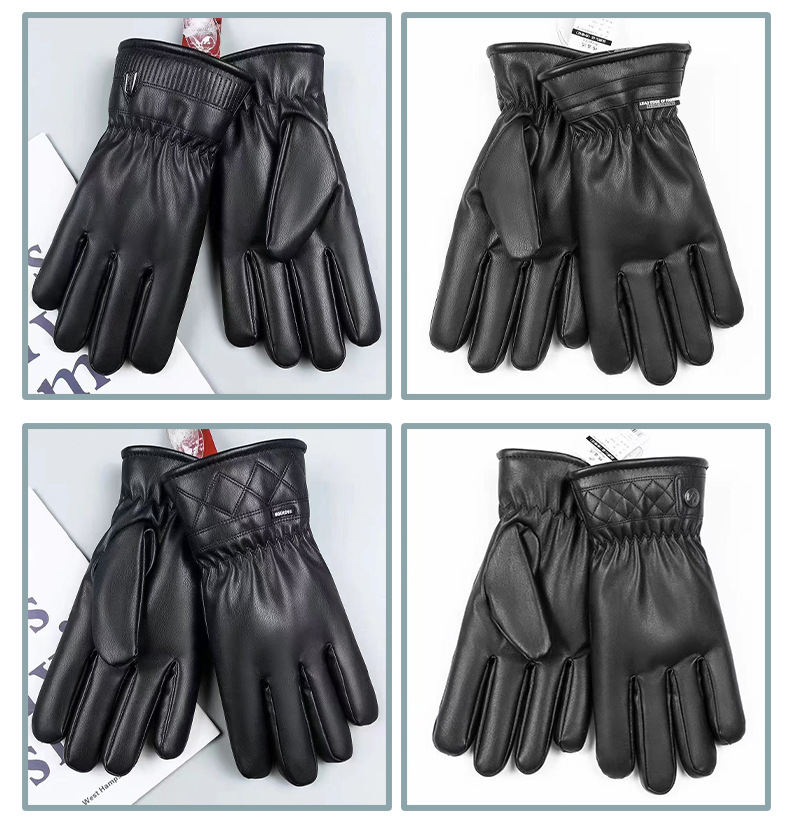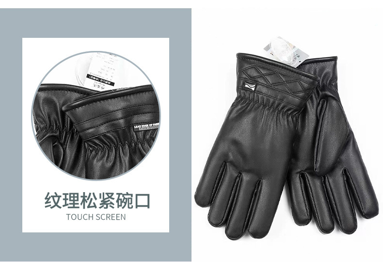 羽绒棉皮手套男冬加绒加厚保暖皮革防雨防风黑色男式手套超市批发