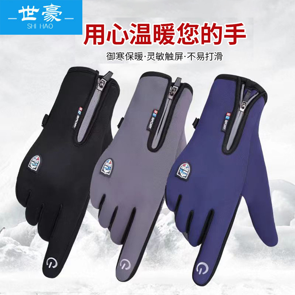 手袋男性防寒秋冬ベルベット保温屋外運転自転車手袋タッチパネル徳毛タッチパネル手袋