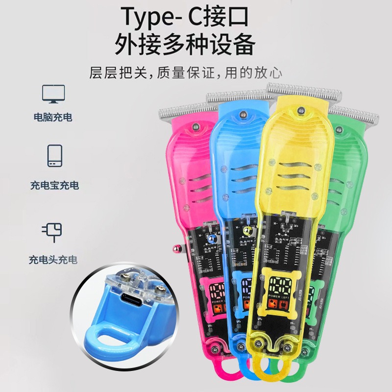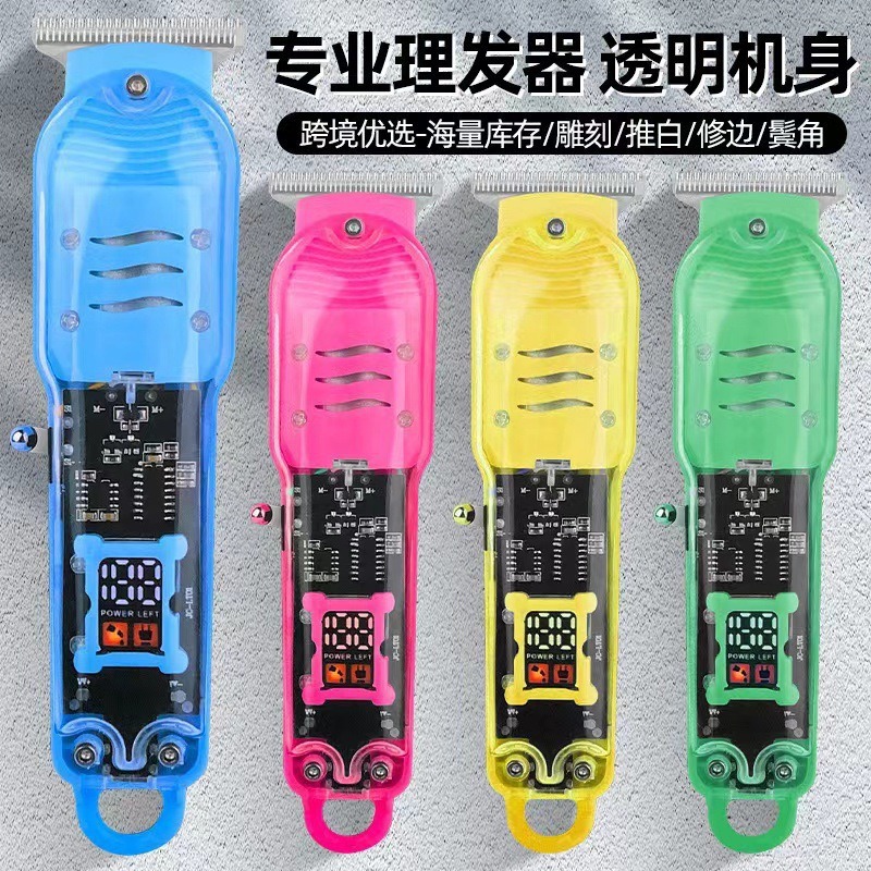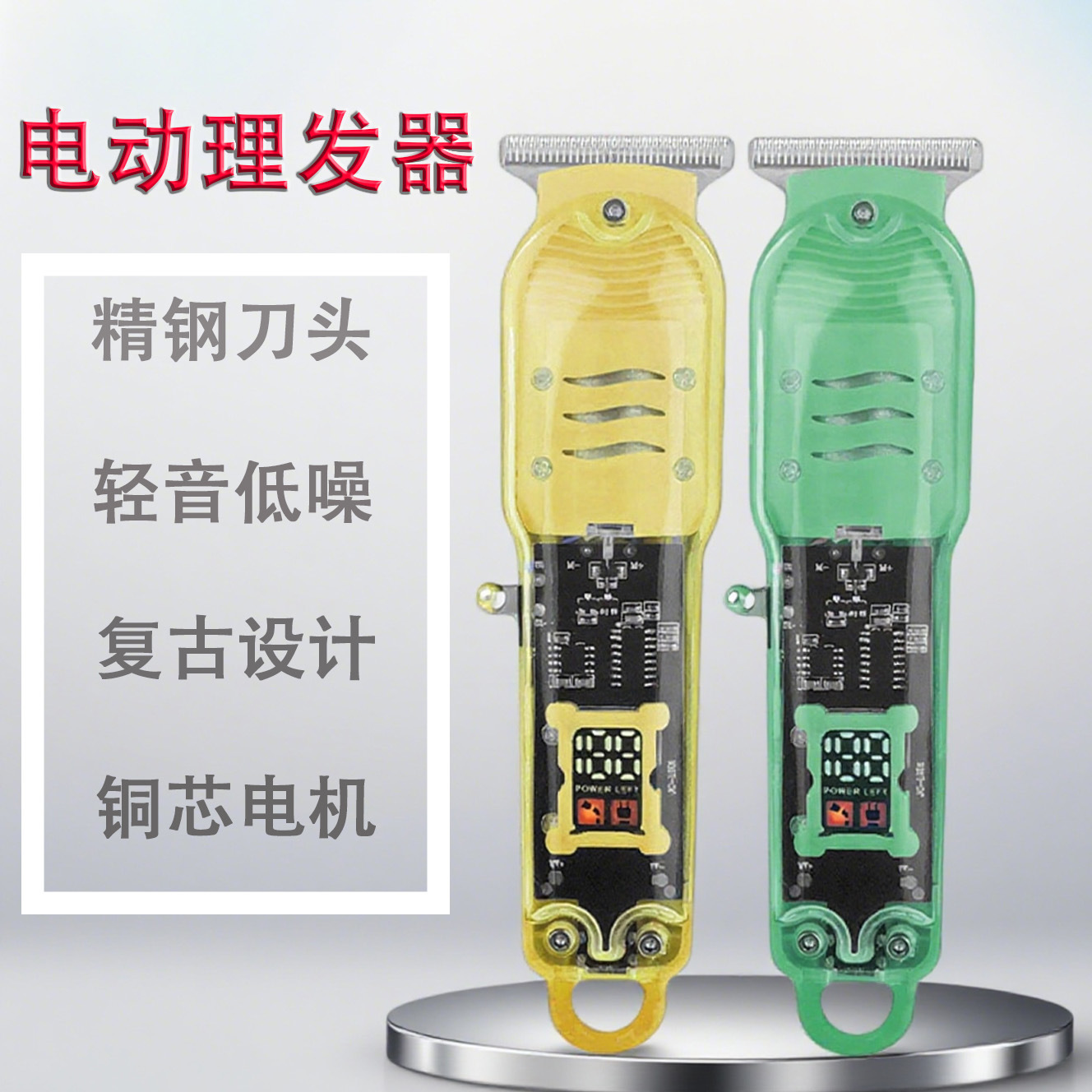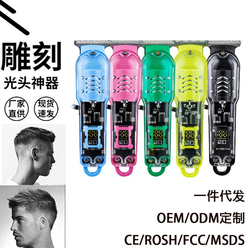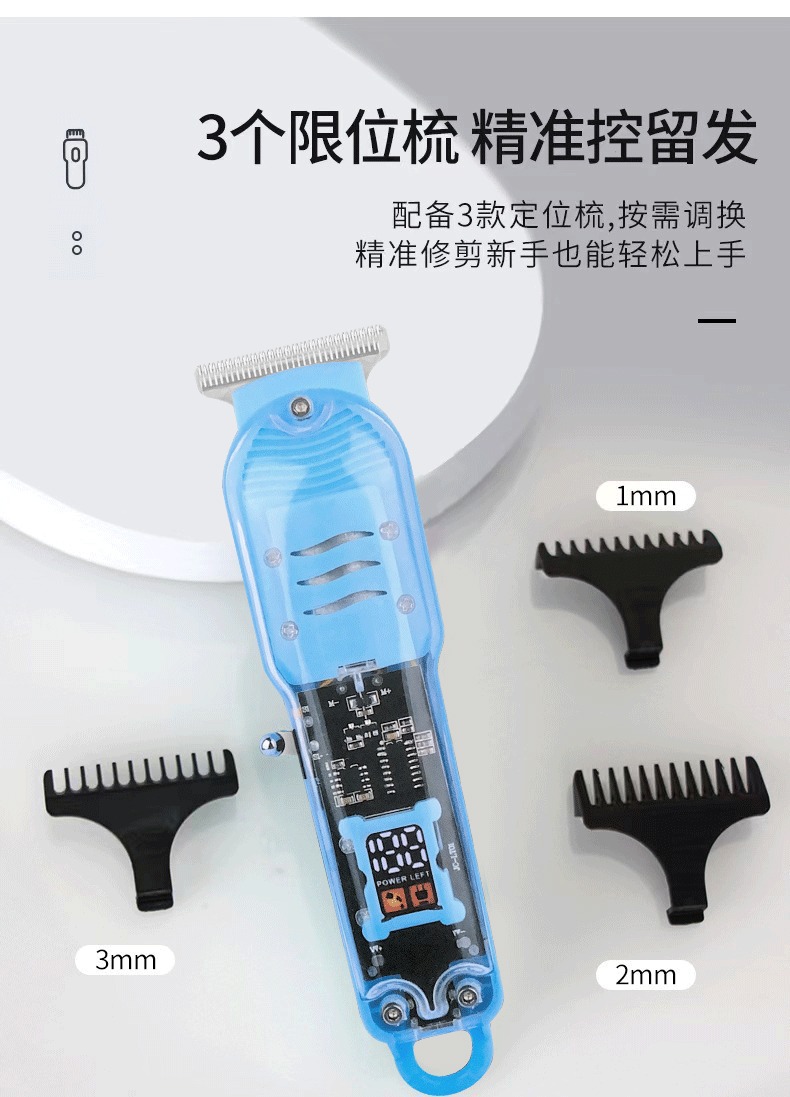 跨境透明剃头理发器液晶数显油头电推剪男士家用充电式雕刻电推子