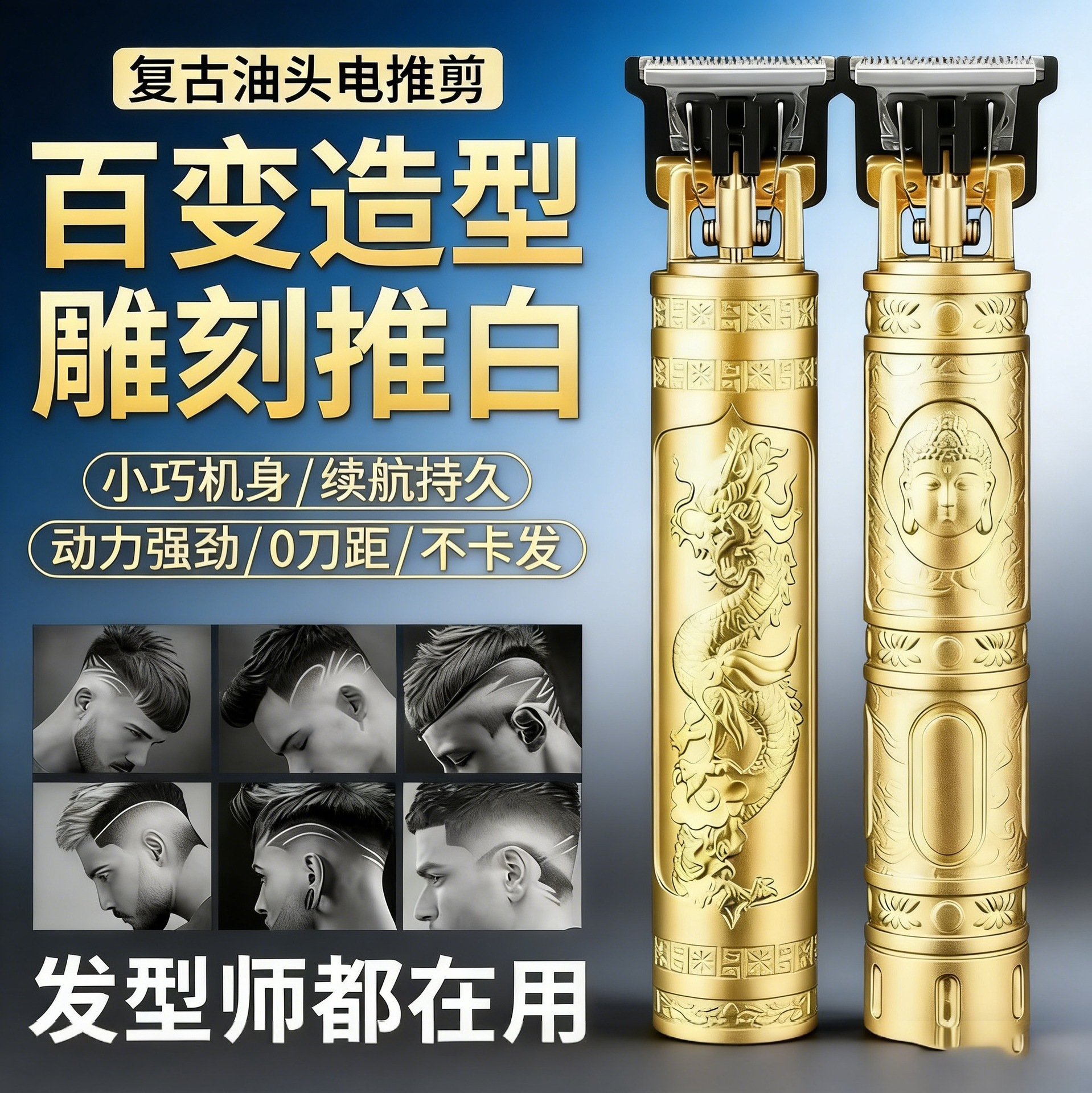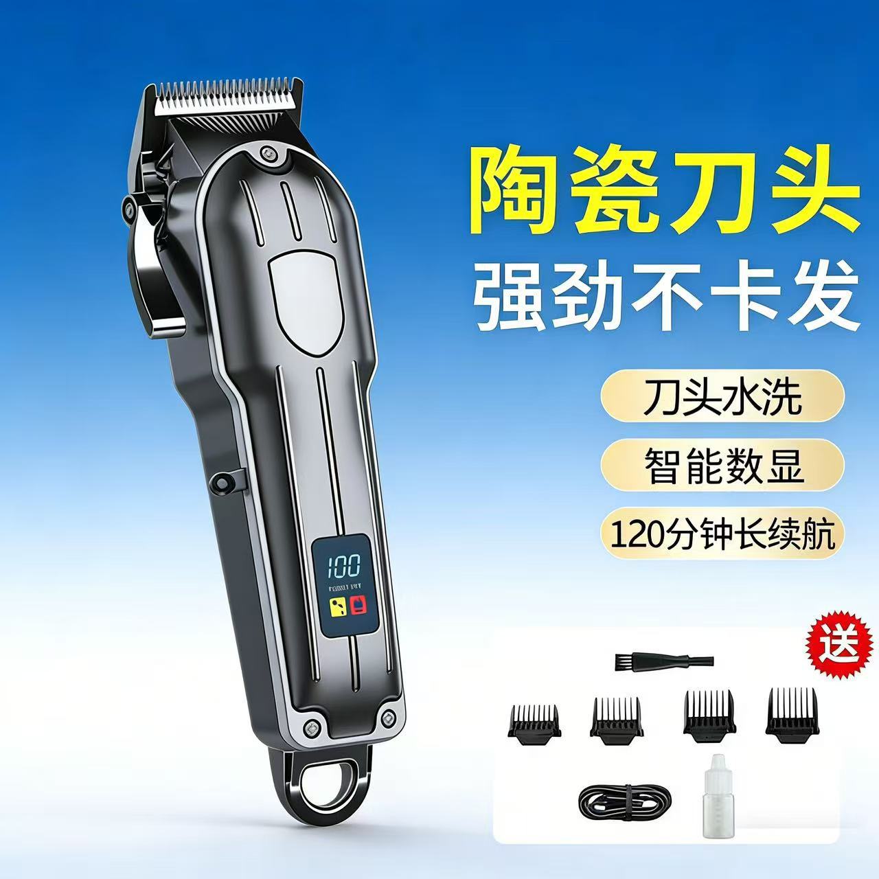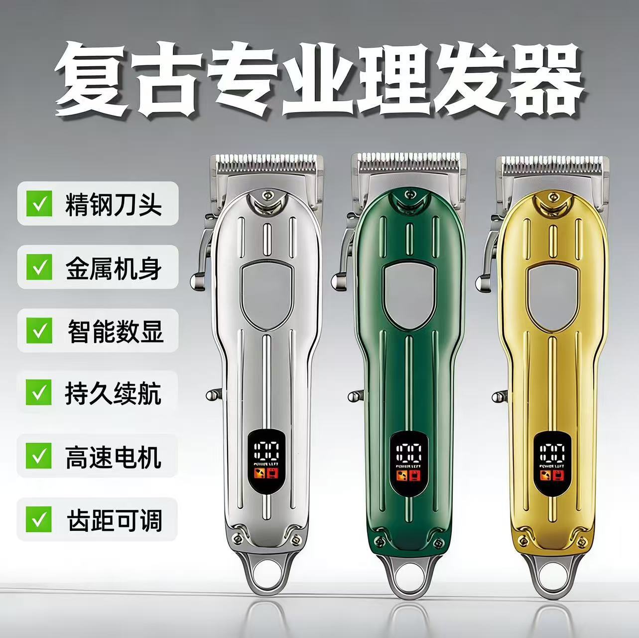跨境新款剃光头神器油头雕刻数显充电式超长续航男士理发器电推子