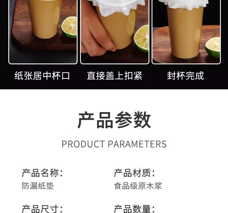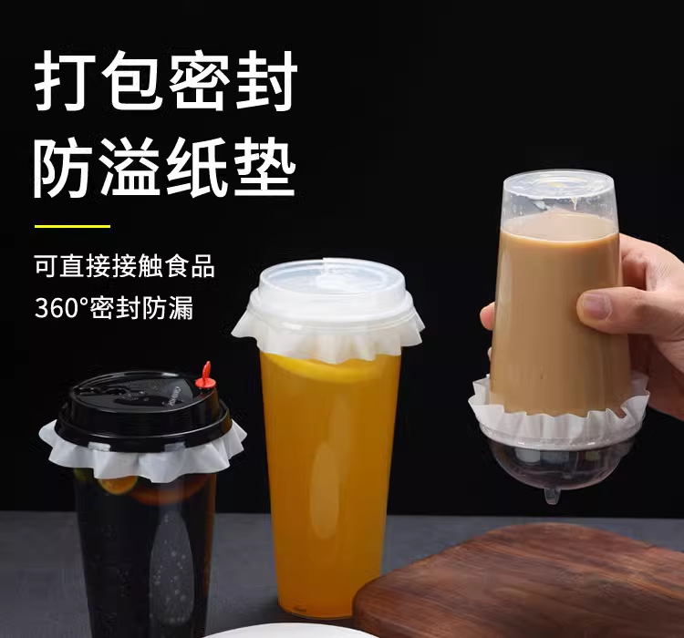 奶茶防漏纸一次性封盖纸咖啡打包塑料杯密封垫片外卖封口膜防溢纸