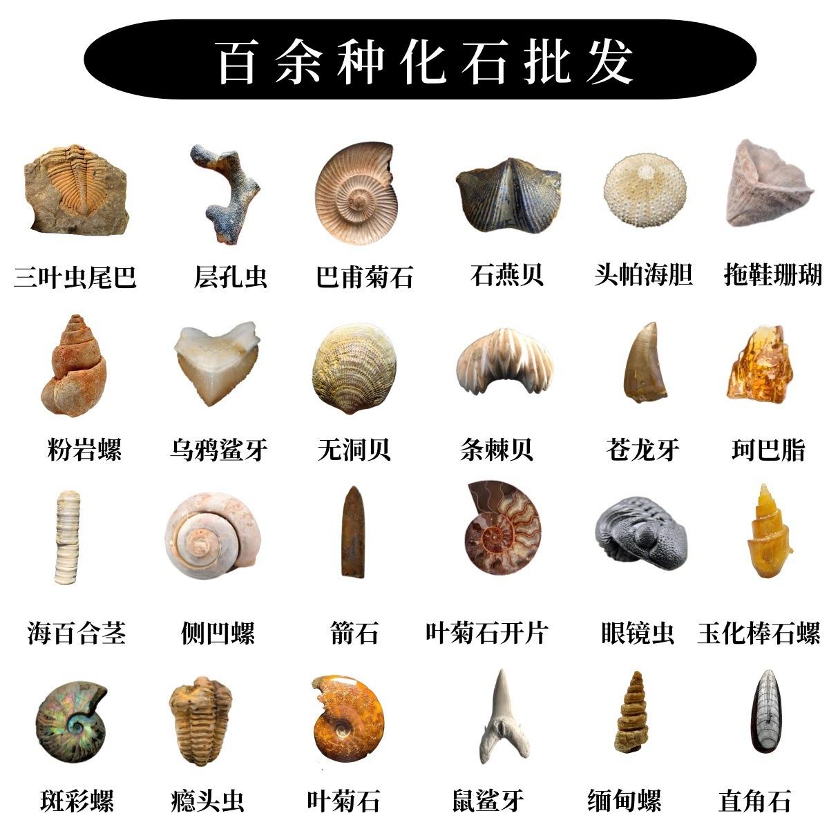 批发天然古生物贝壳珊瑚菊石牙植物昆虫三叶虫鱼化石标本儿童科普