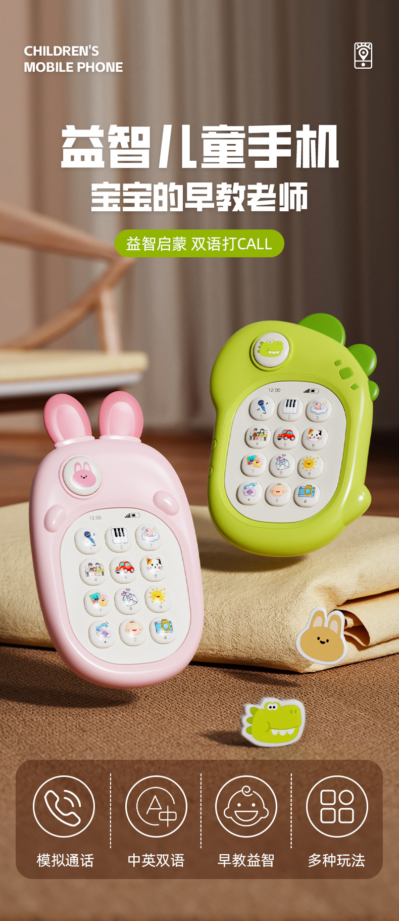 子供用多機能電話、ピアノ、音と光、音楽、ストーリーテリング、男の子と女の子の早期教育玩具卸売