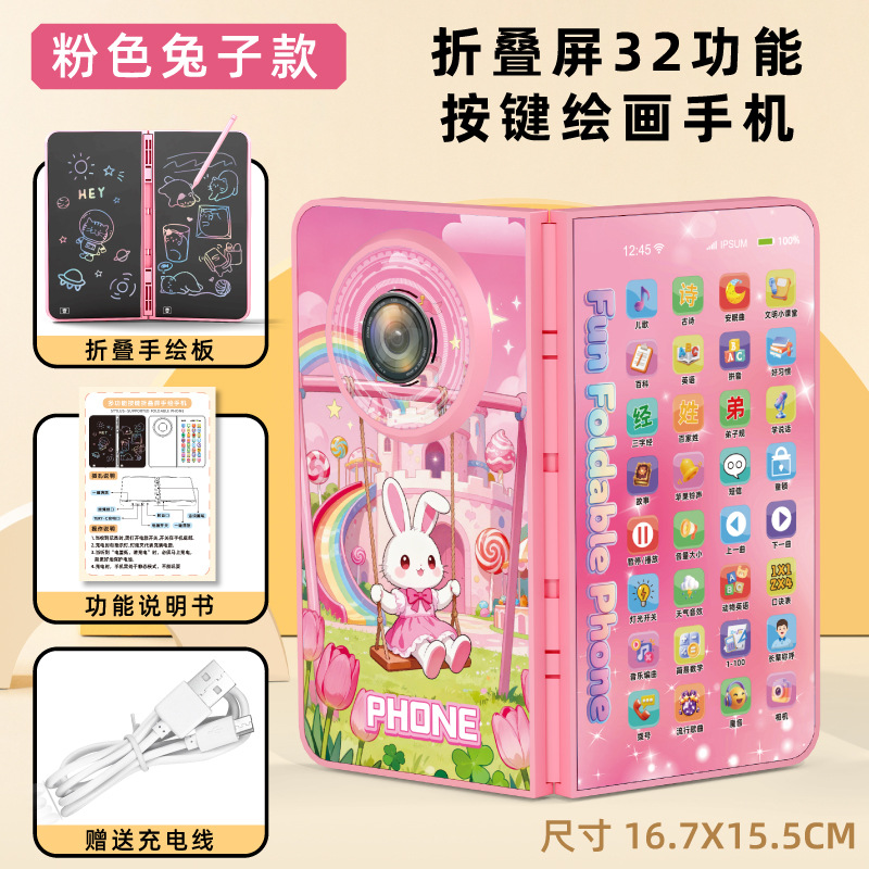 儿童仿真折叠音乐手机宝宝早教益智婴儿智能触屏电话电子画板玩具