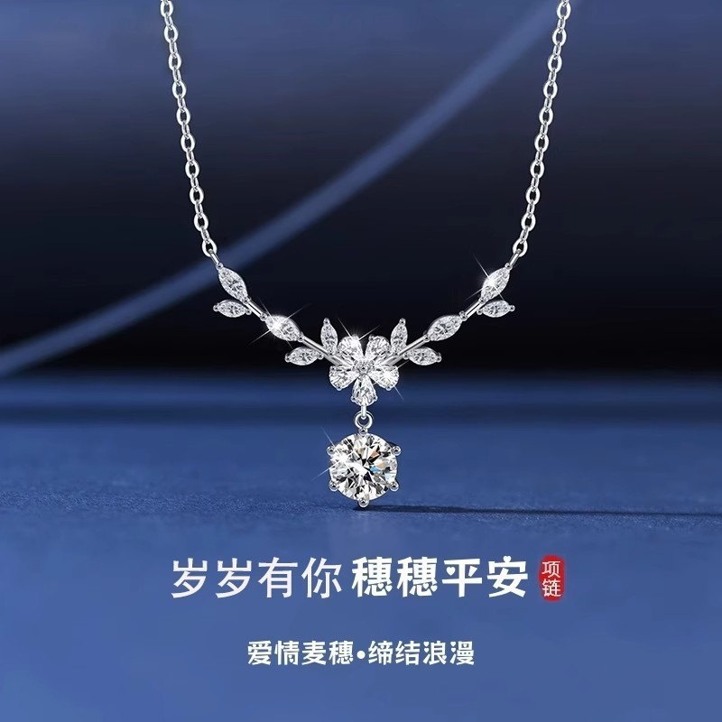 スターリングシルバー藤の花小麦穂ネックレスレディースニッチデザイン鎖骨チェーンライト高級ダイヤモンドハイエンド本物