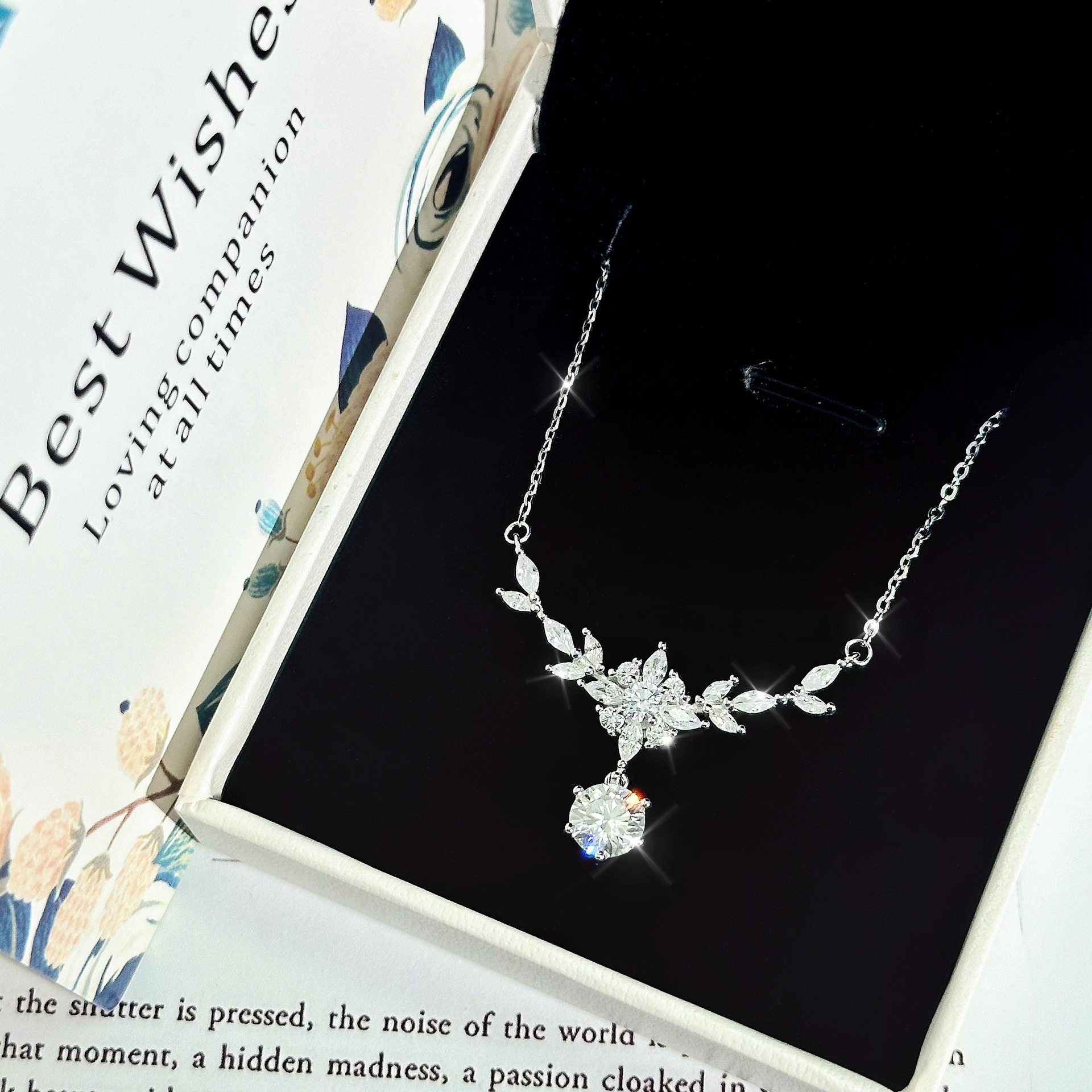 オリジナル高級感S925純銀花穂ネックレス 超輝き1カラットモアサナイト森風花枝ペンダント女性用