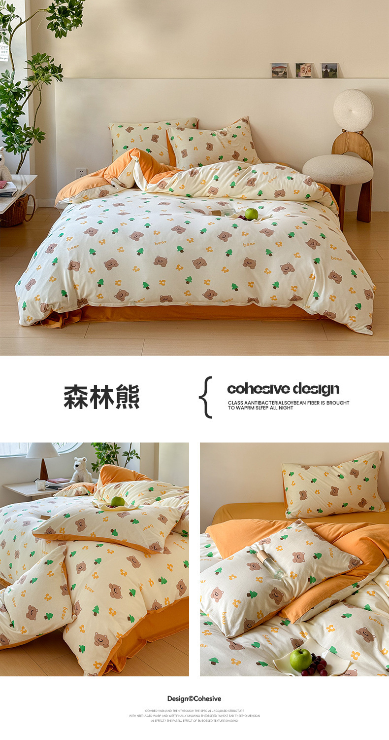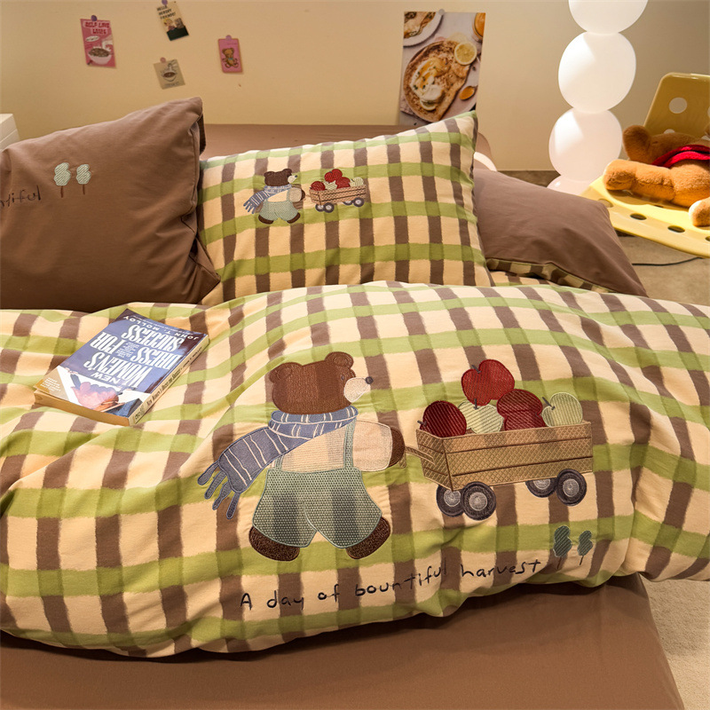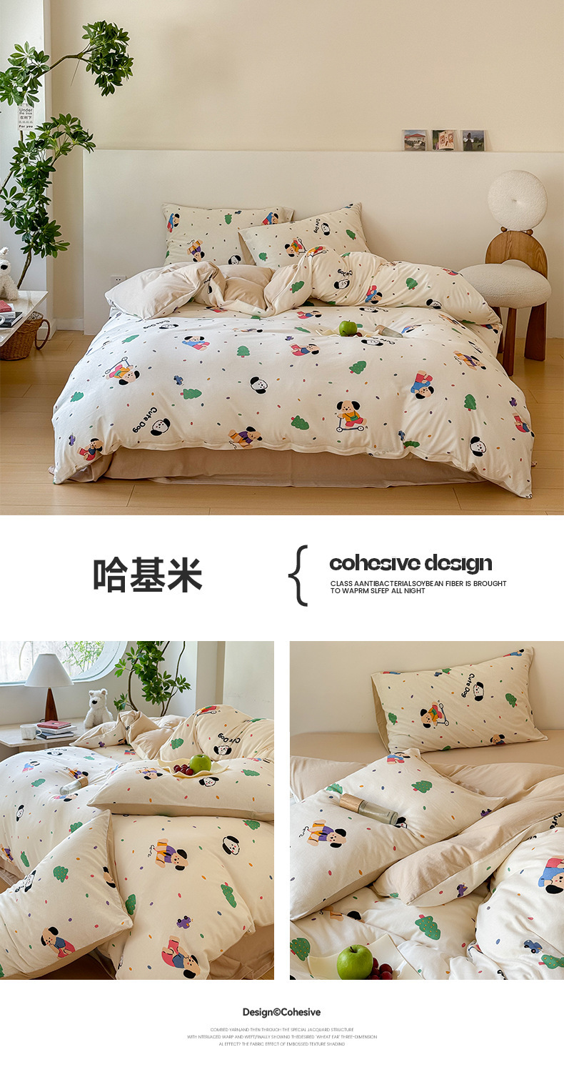 A类母婴级全棉加厚磨毛卡通毛巾绣床上四件套纯棉被套三件套床单