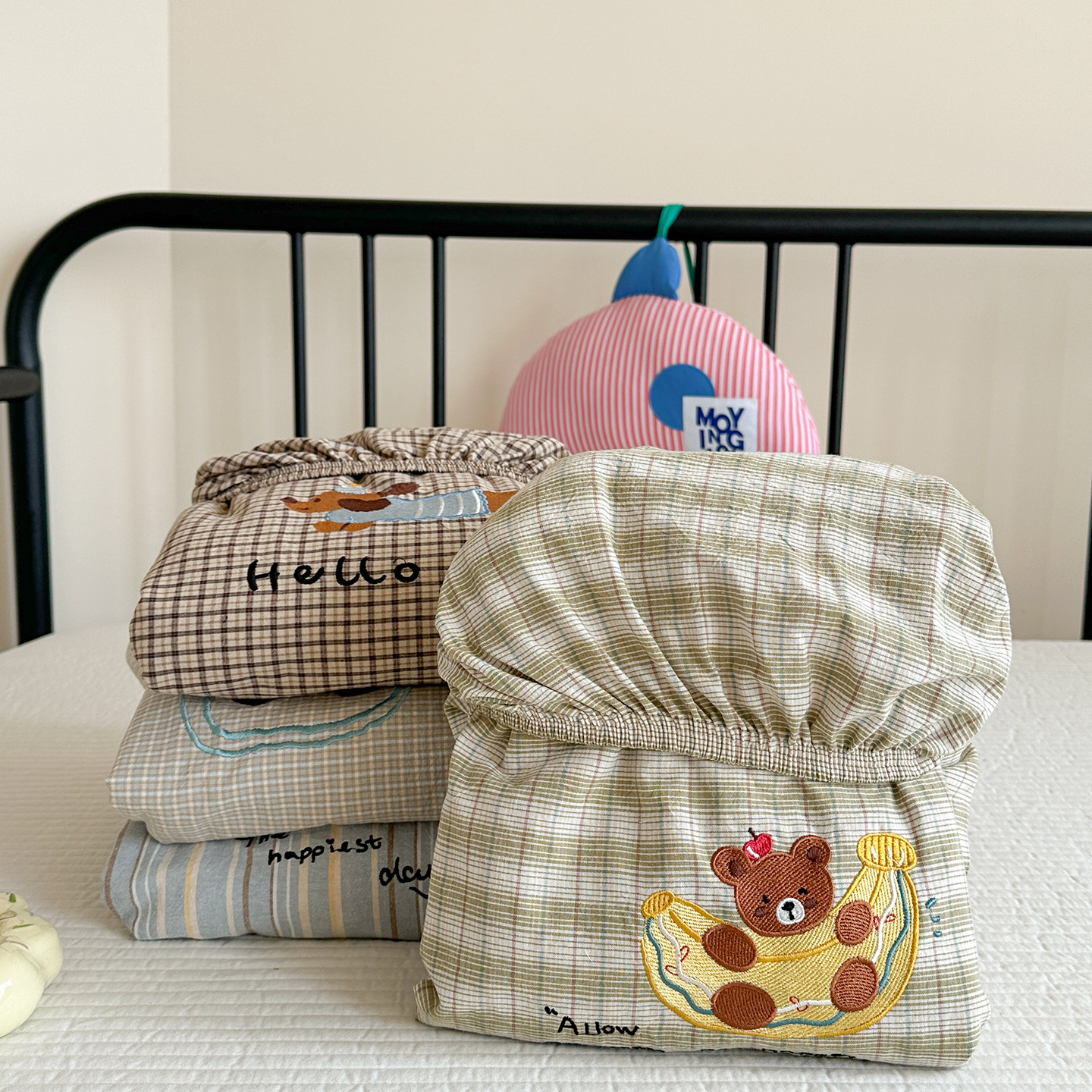 CELING韩系卡通刺绣全棉水洗棉床笠三件套纯棉1.5m1.8m床单床垫套