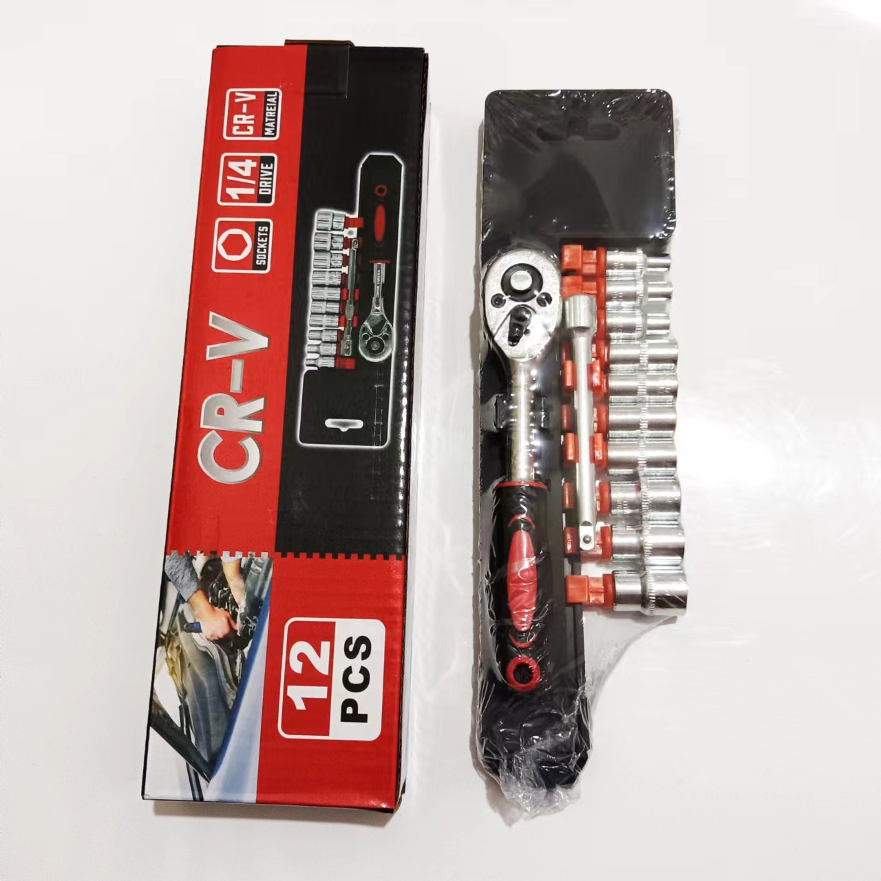 12件套小飞大飞1/2、1/4英寸汽修工具棘轮套筒扳手套装车载汽车五