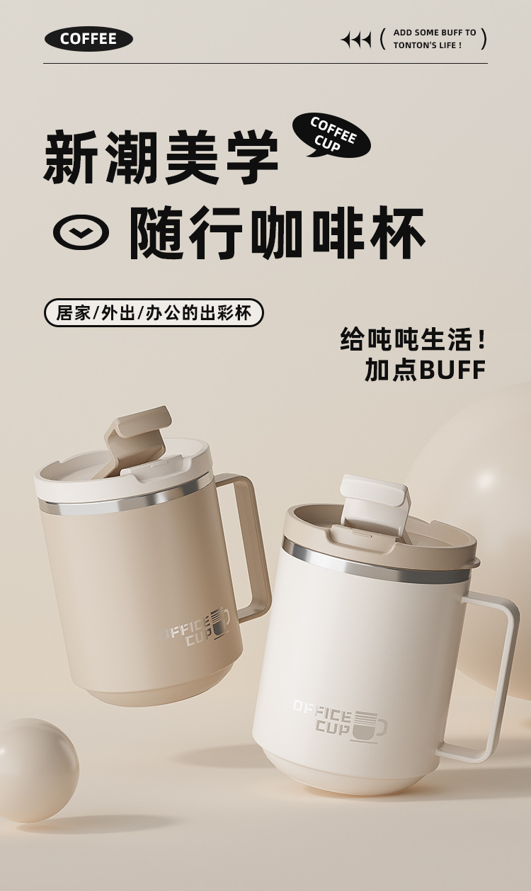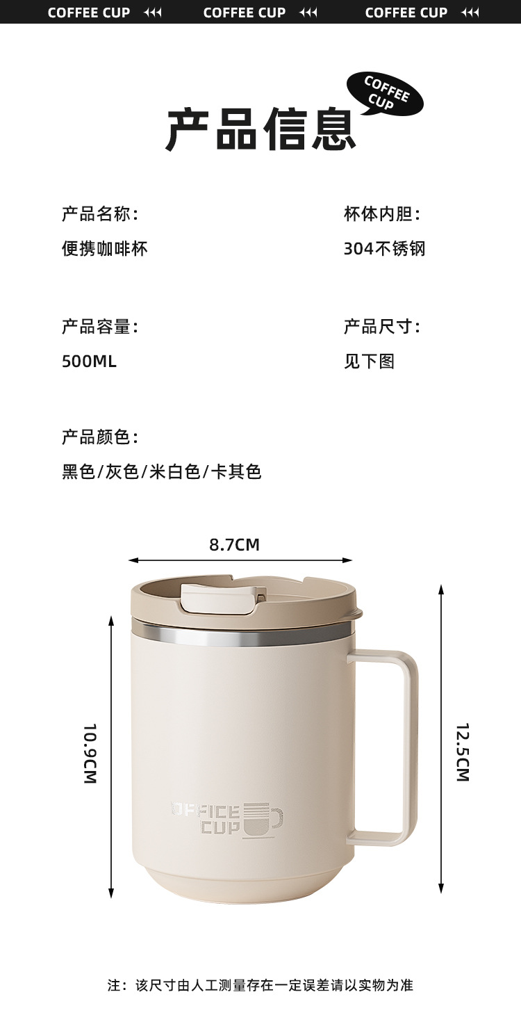 クロスボーダー304ステンレスマグカップ男女オフィスカップ蓋付きコーヒーカップTEMU起爆金供給ラベル