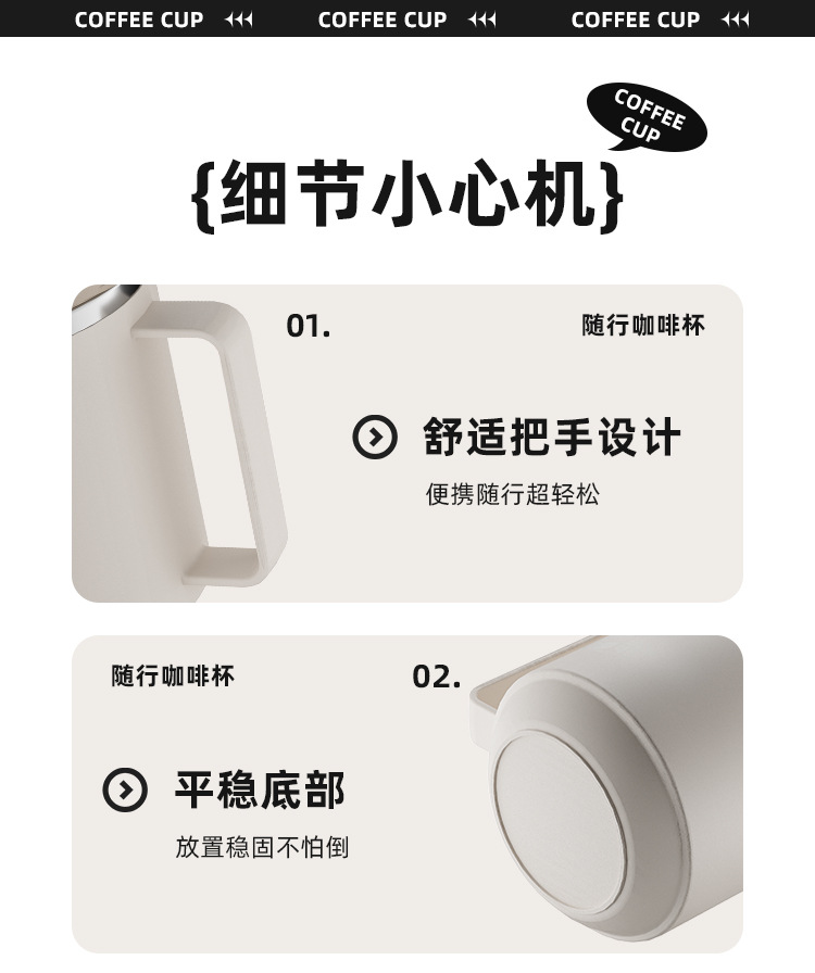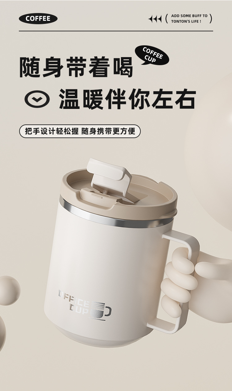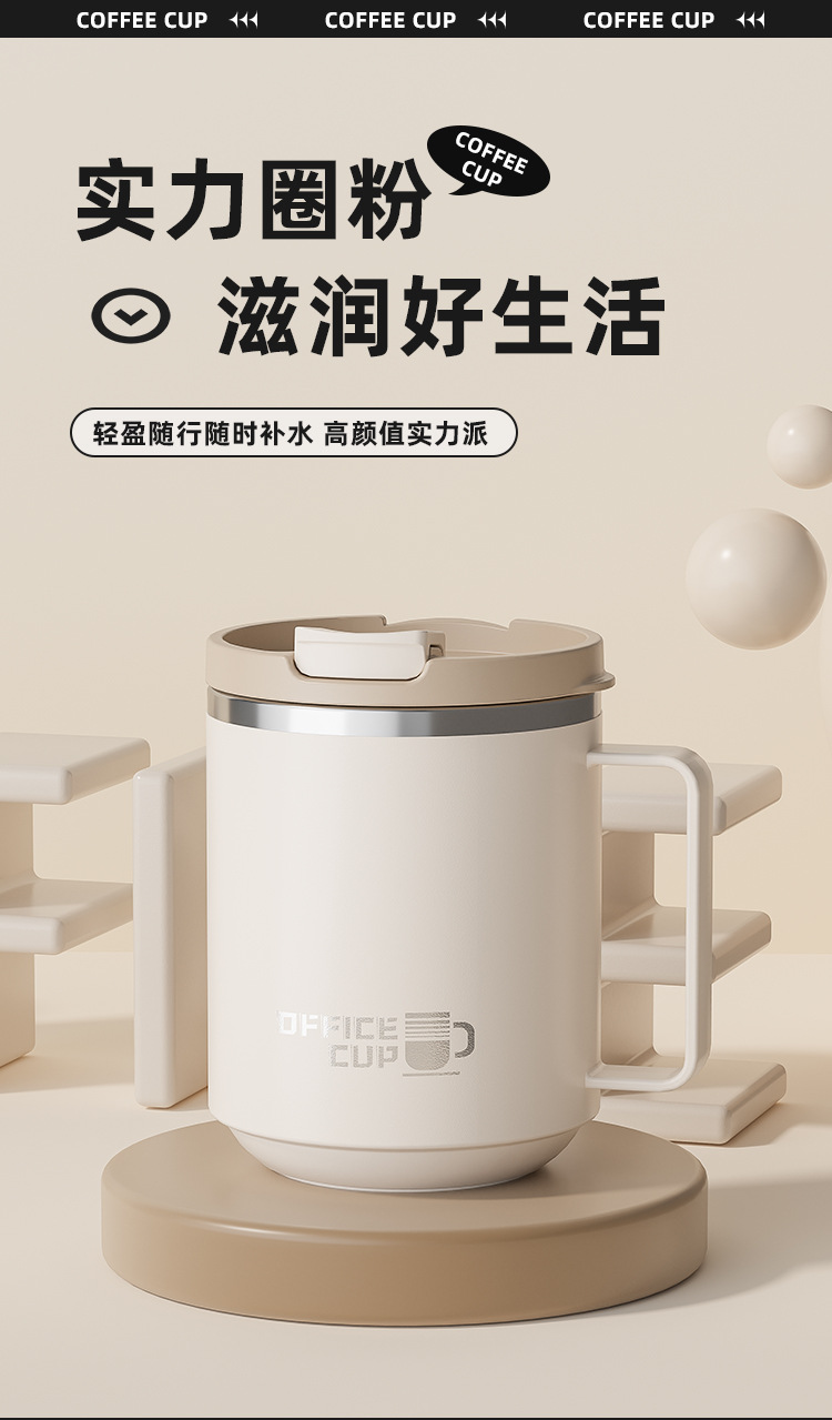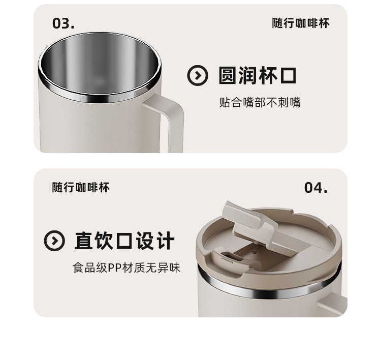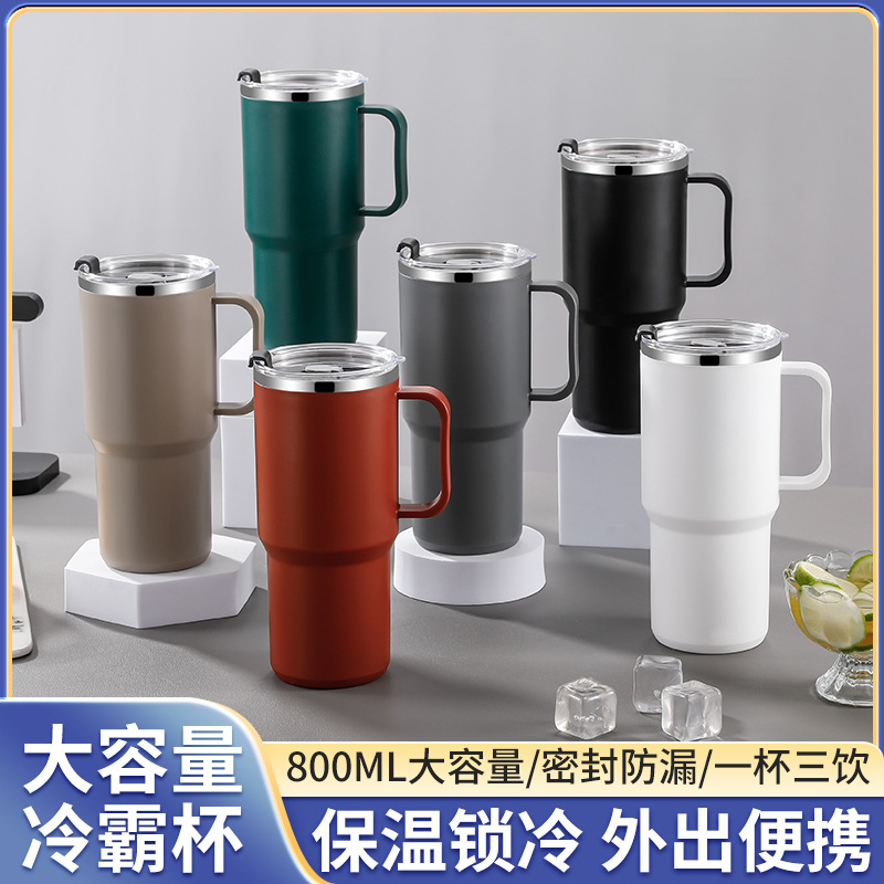 跨境外贸新款304不锈钢真空保温户外便携手柄吸管车载办公车载冰