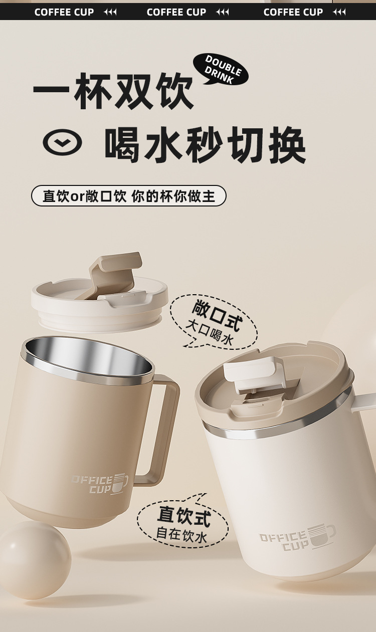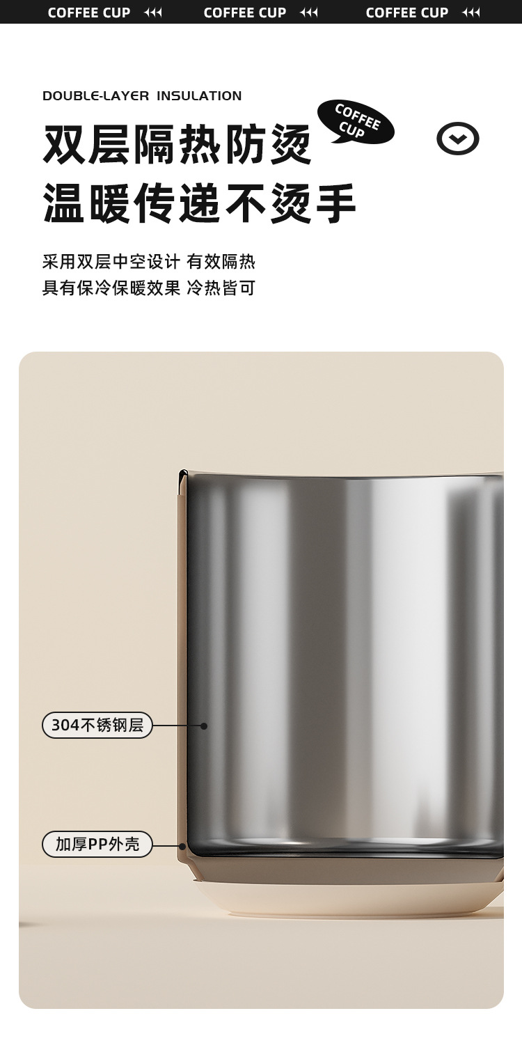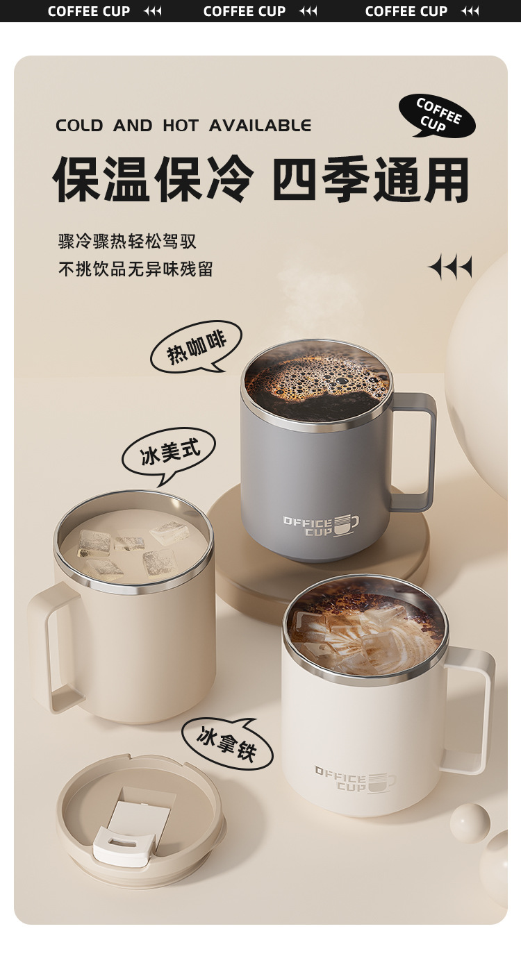 メーカー直供オフィス蓋付きコーヒーカップ304ステンレス二重カップ高颜値クリエイティブカップクロスボーダー
