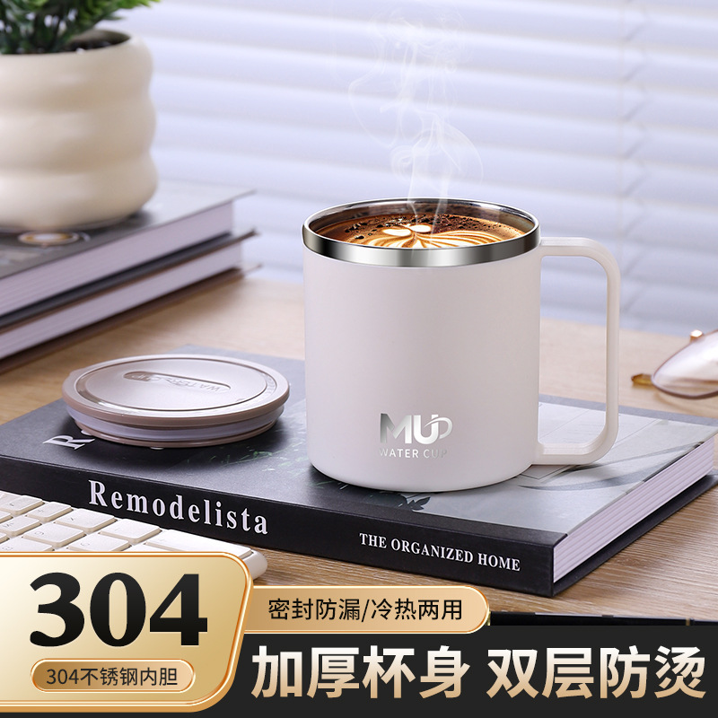 304ステンレスカップルマグカップ蓋付き転倒防止大容量家庭用コーヒーカップオフィス高颜値泡カップ