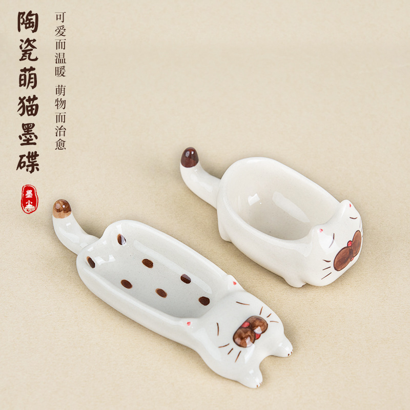 萌え猫の墨の皿の陶磁器の高い顔の値のかわいい猫の多機能のペンは水の皿を置いて墨の墨の皿のミニの筆の山の墨を入れます。