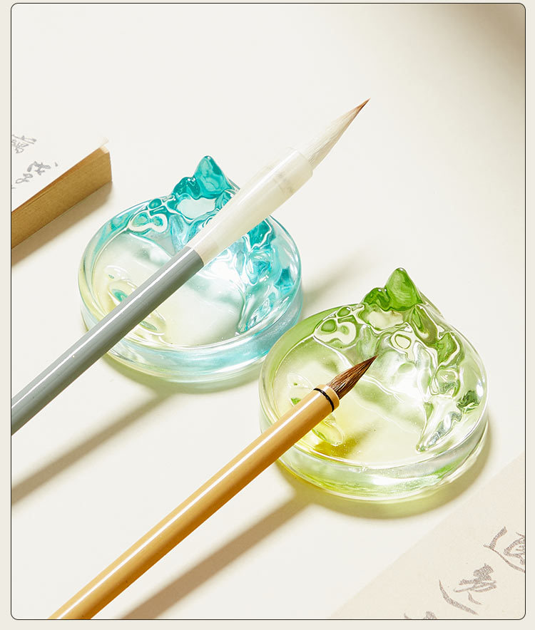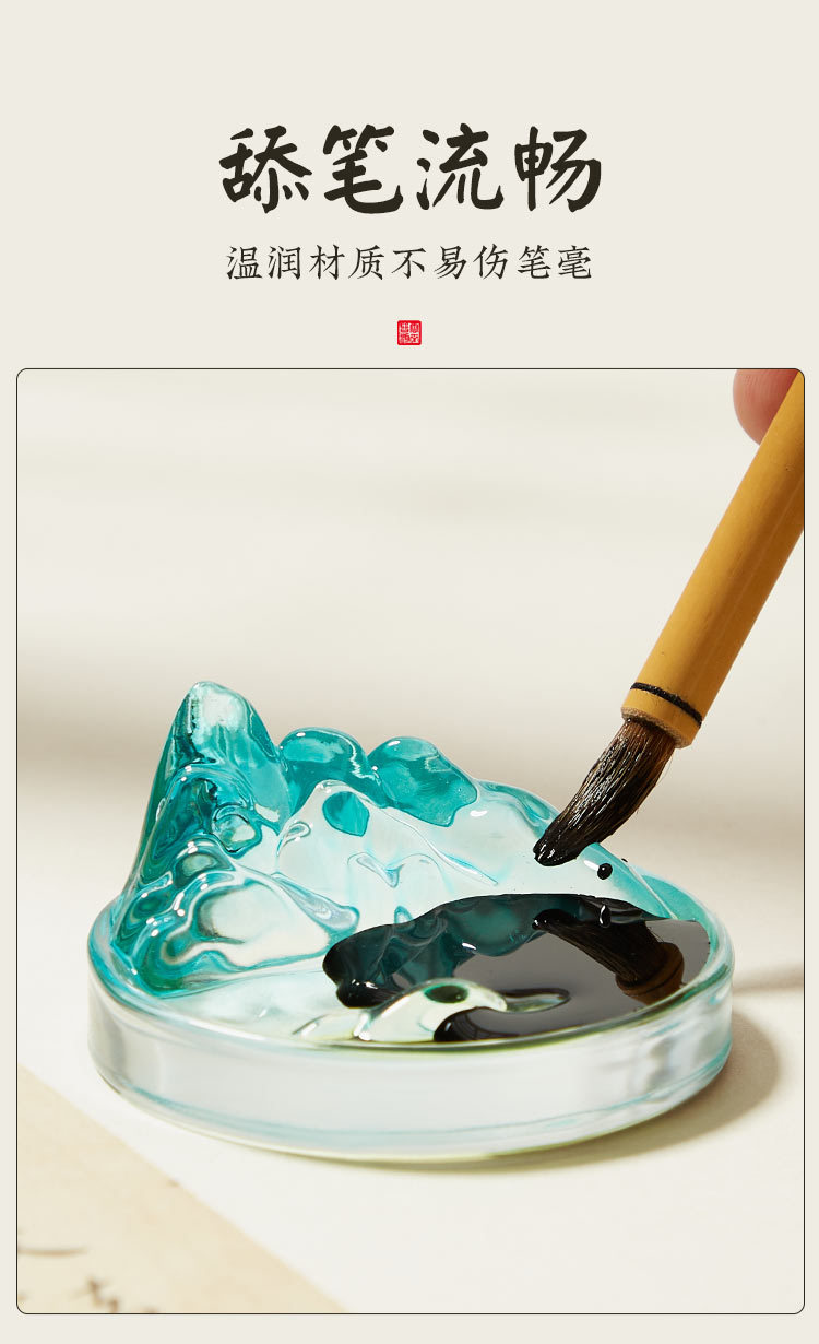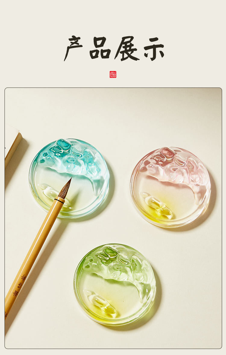 千里江山の円形の小さい墨の皿の筆は書道の国画の専用のインクの皿の墨の皿の多機能の文房の四宝をなめます。