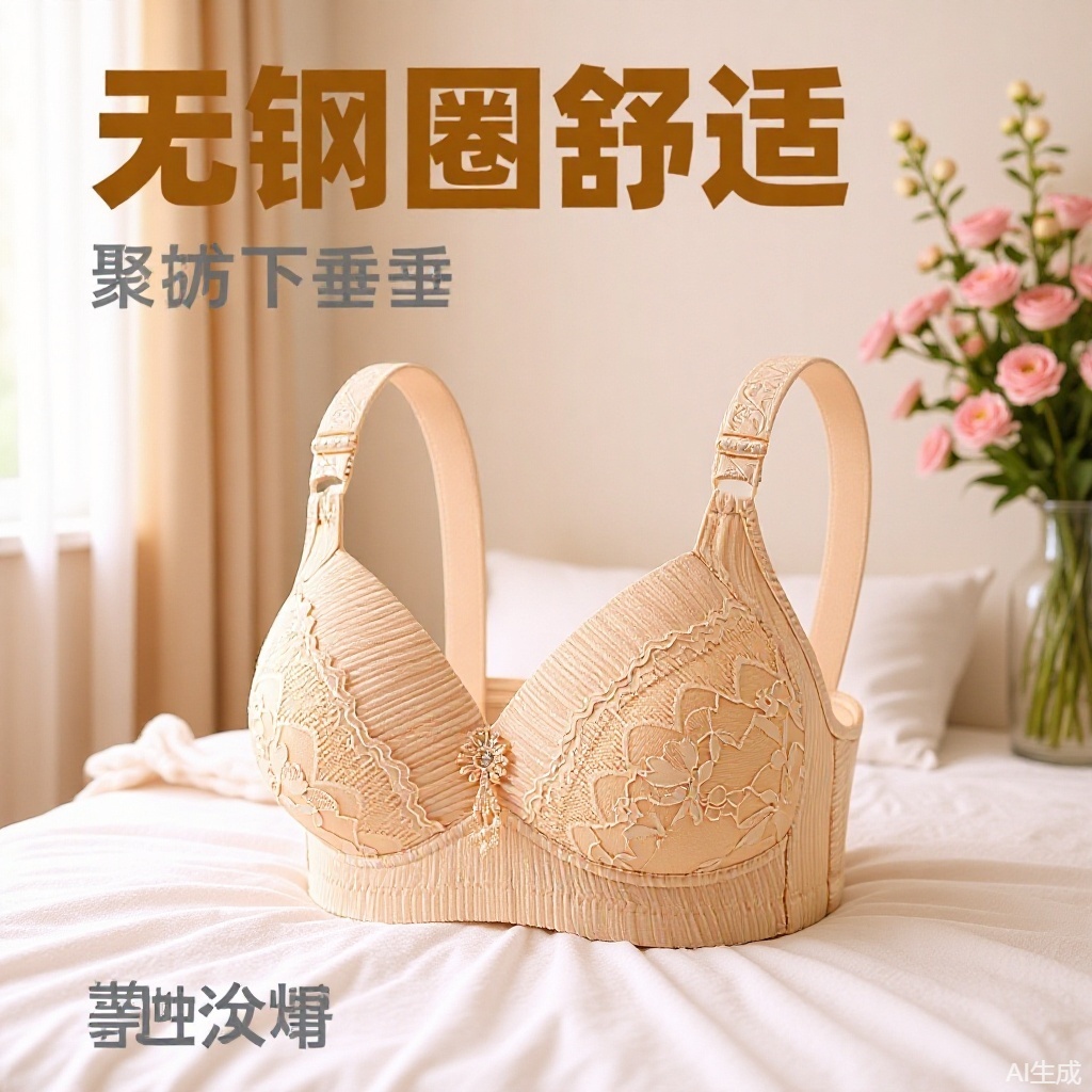 新款透气罩杯中老年女士内衣无钢圈大胸显小侧收副乳内衣舒适