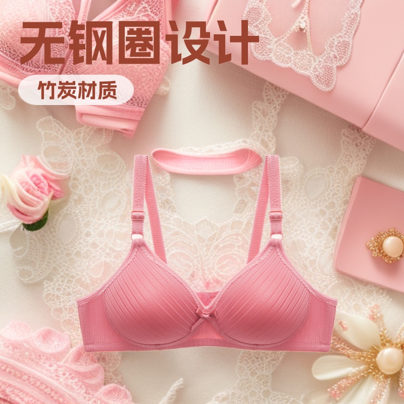 薄型竹炭インナーカップノンマグネットブラ、ソフトでセクシー、ノンワイヤー、バストアップ、サイドギャザー、美胸、快適で通気性のあるブラジャー