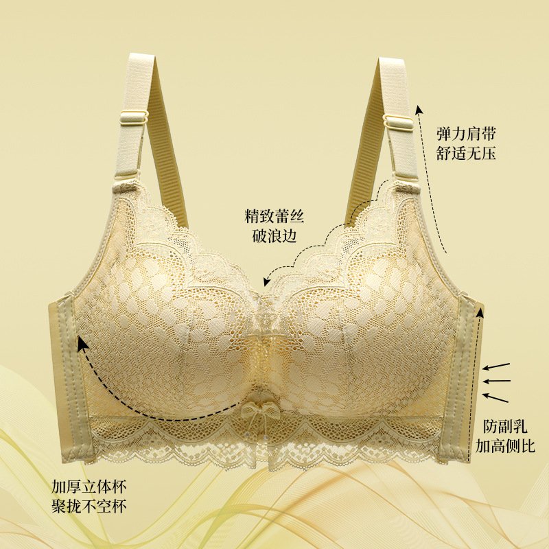 セクシーレースの優雅な女性の下着の厚いタイプの小さい胸は大きいサイズを収めて副乳を集めてスチールリングの調整型のブラジャーがありません。