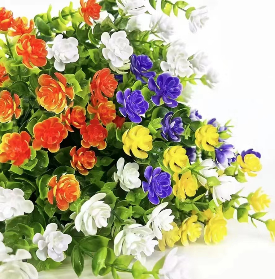 屋内屋外用プラスチック花飾り、紫外線に強い偽花灌木、花園家庭結婚式農舎用