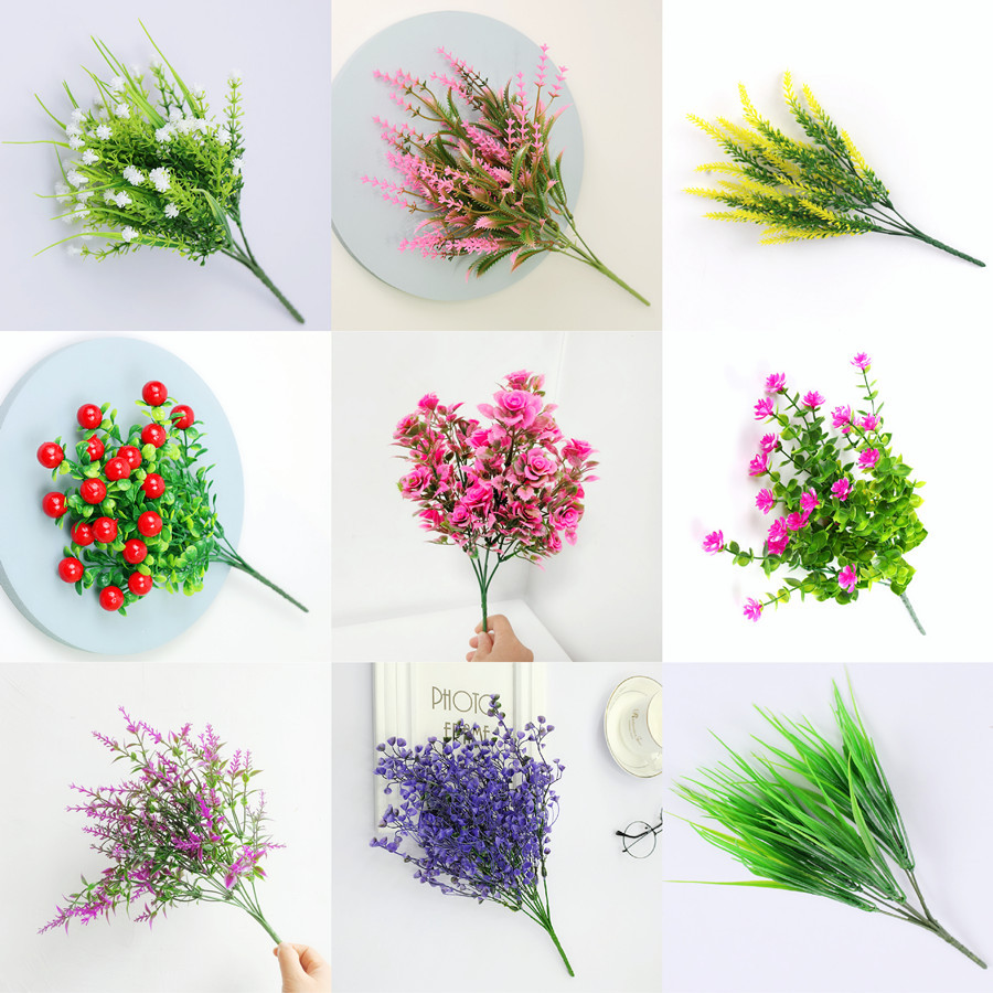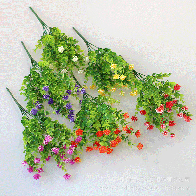 单支假花花束塑料花假花尤加利水草装饰花栅栏满天星小把束花