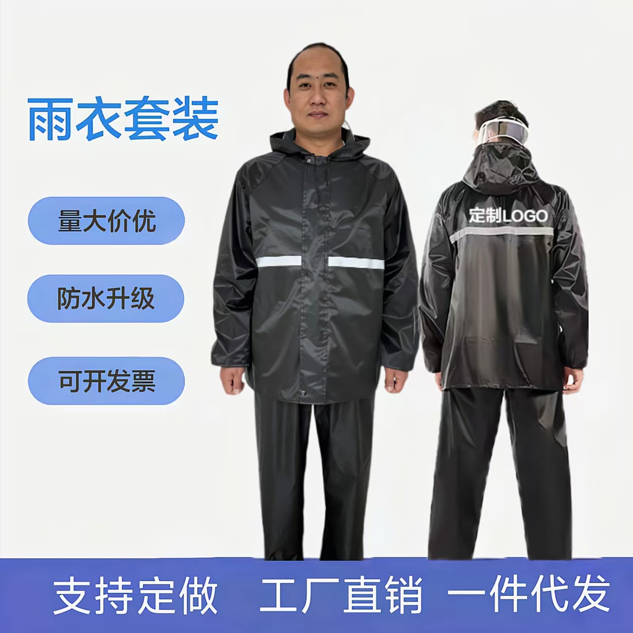 オックスフォード布厚手ライディング反射レインコート労働保護アウトドア成人分体レインコートレインパンツセット