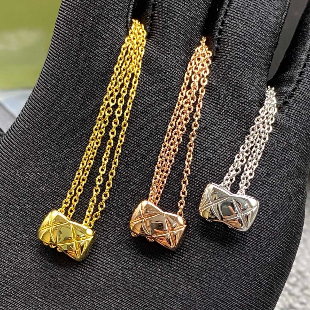 V金高版本CNC双层菱格项链女 COCO小香经典菱格菱格纹锁骨链批发