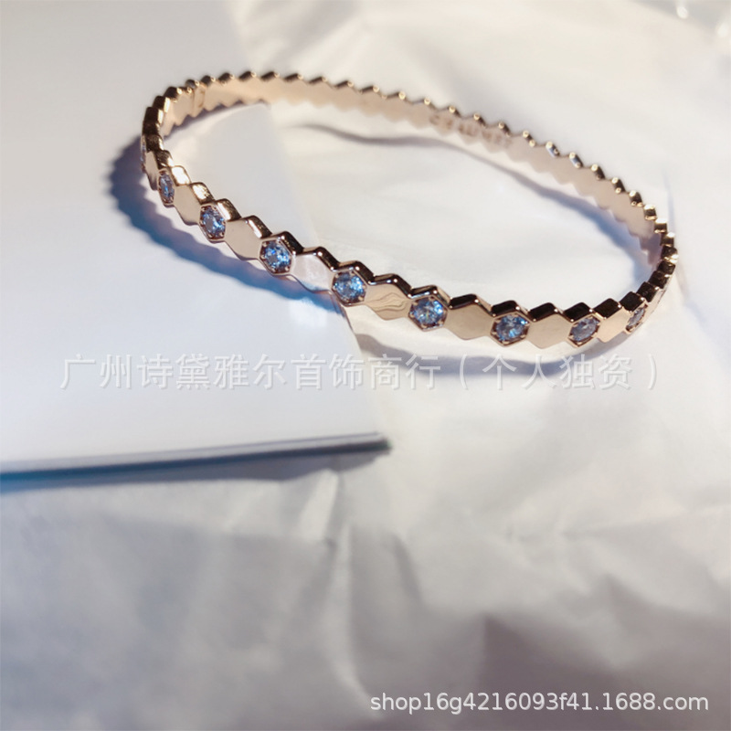蜂巢手镯18k蜂窝彩金满钻指环潮人时尚饰品现货厂家直销