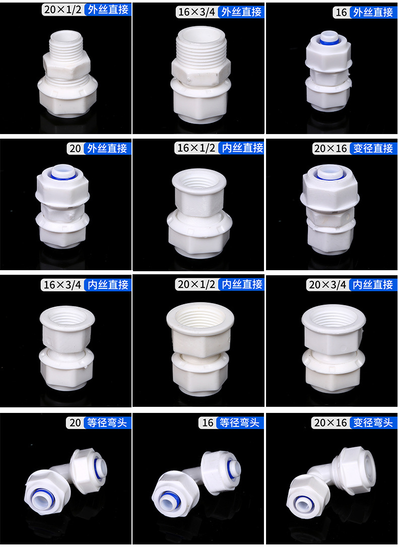 20POM 直結クイック接続継手、熱溶接不要、取り外し可能、直接エルボ、三方弁、PEクイック接続、PPRクイック接続継手