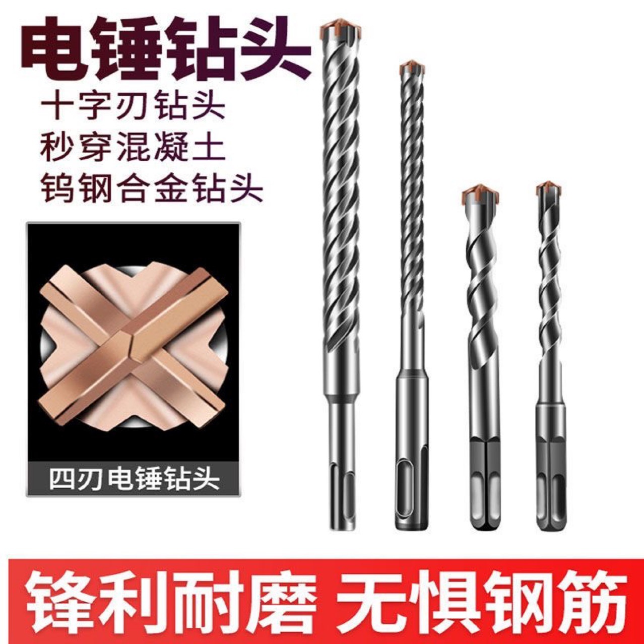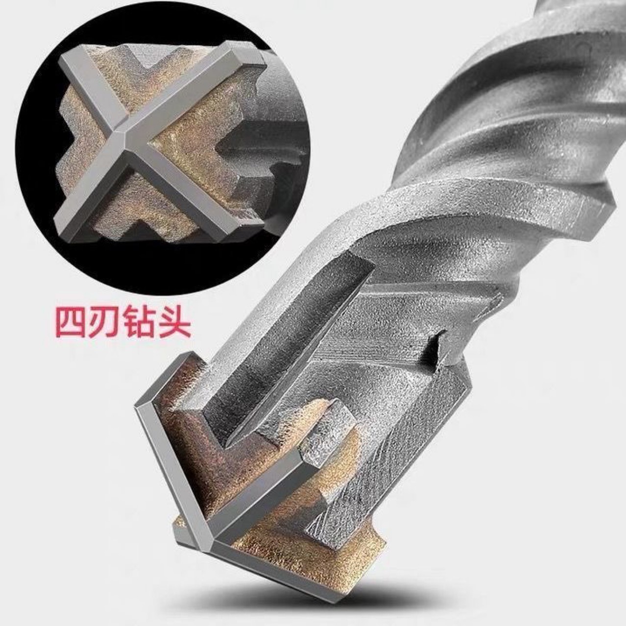 ハンマークロスヘッド延長セメント鉄筋コンクリート壁を通してドリルの丸い柄の2つの穴の2つの溝の合金が壁を打ちます。