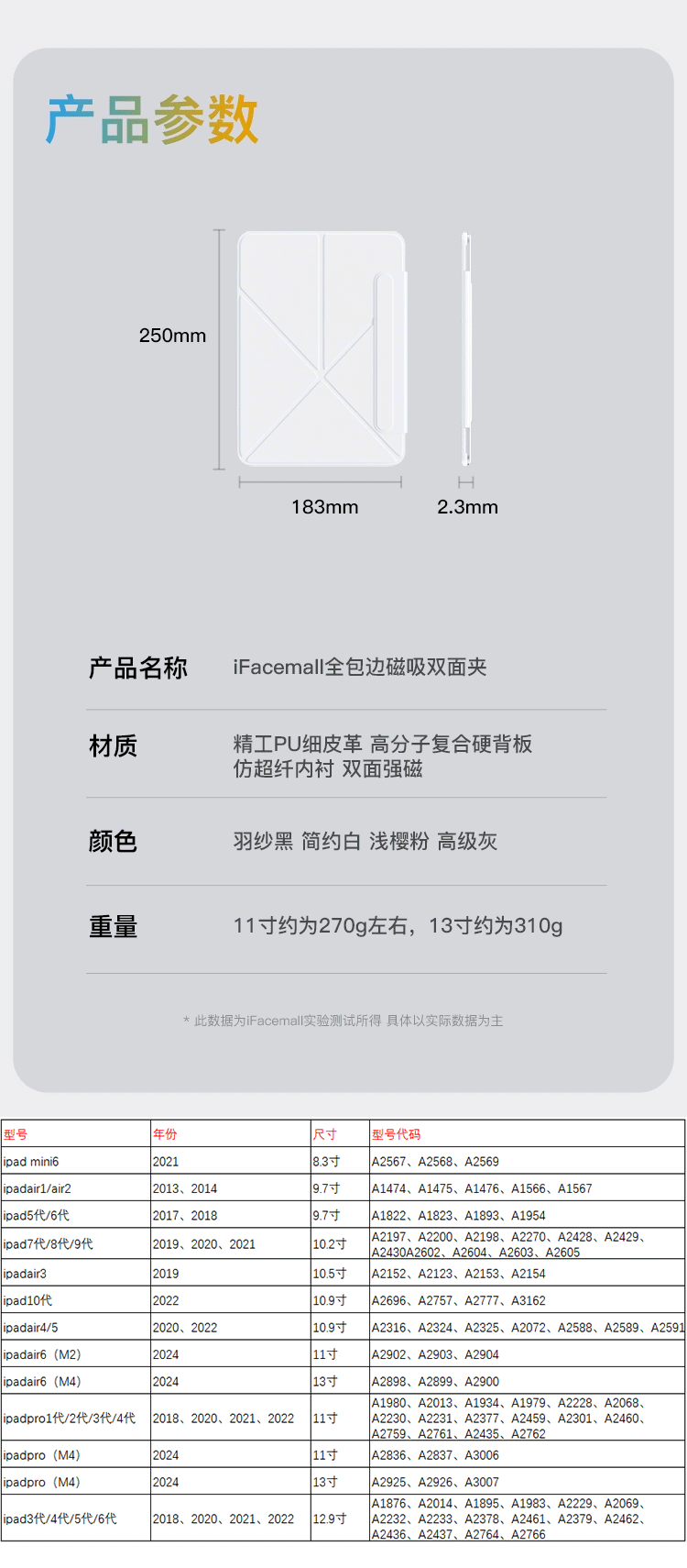 iPadair7/6磁吸双面夹pro11保护套11代10平板壳四角防撞防弯轻薄