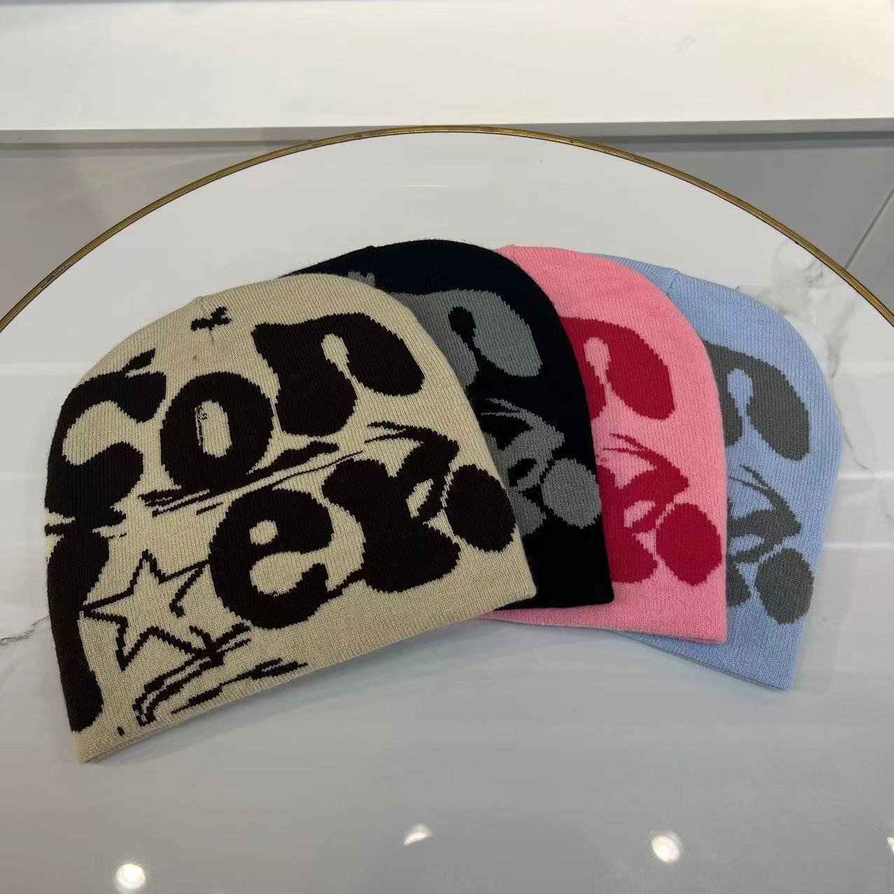 Con現物クロスボーダー爆型ニット帽男女ジャカード欧米流行帽ヒップホップ帽アルファベット帽保温成人
