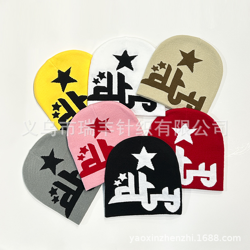 新型ファッションニット帽男女街頭ヒップホップアルファベット毛糸帽カジュアル百合冷帽包頭帽ins潮