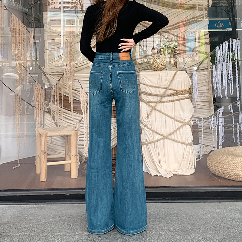 足を貼らないで、ズボンの高い腰のジーパンの子供のズボンの秋冬の新型のゆったりしていて、やせている足の長いズボンが見えます。