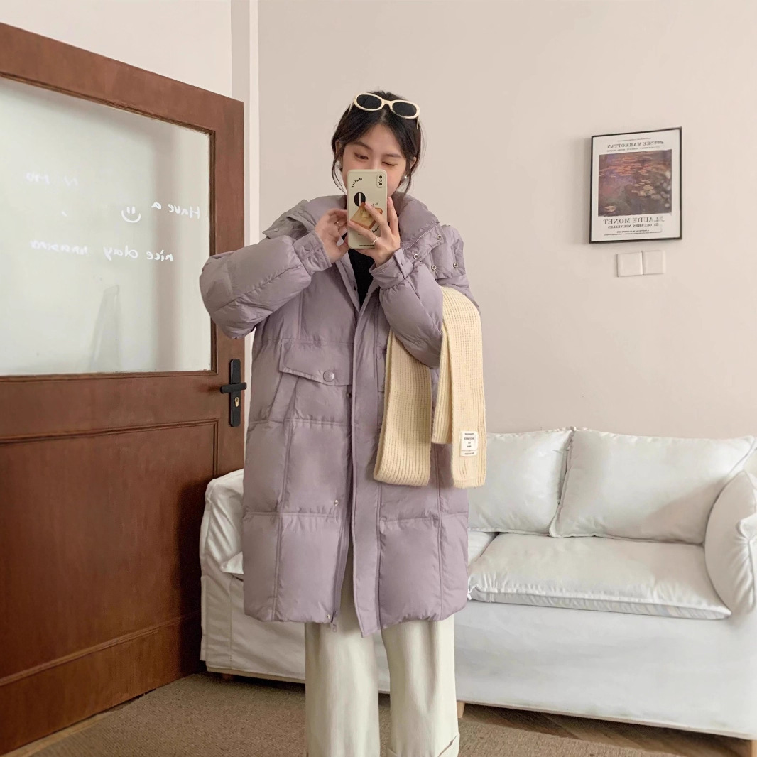 25冬季新韩版长款连帽羽绒服女宽松加厚鸭绒外套AA714