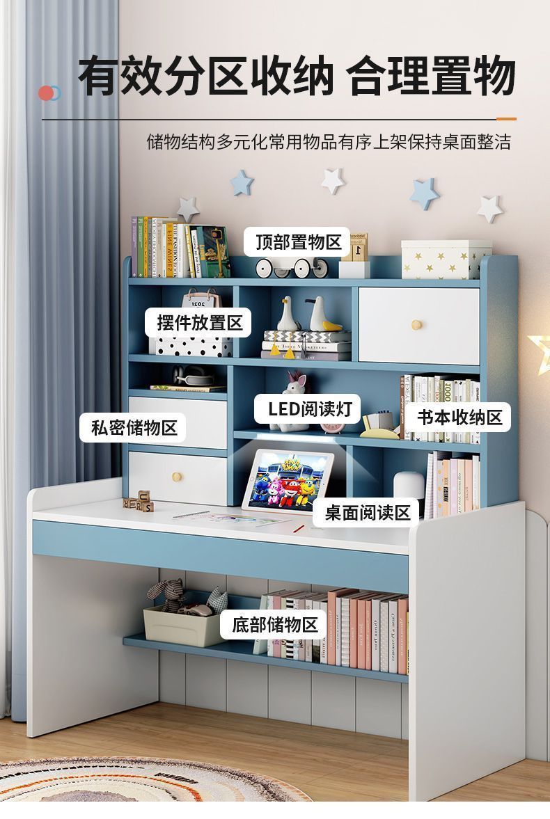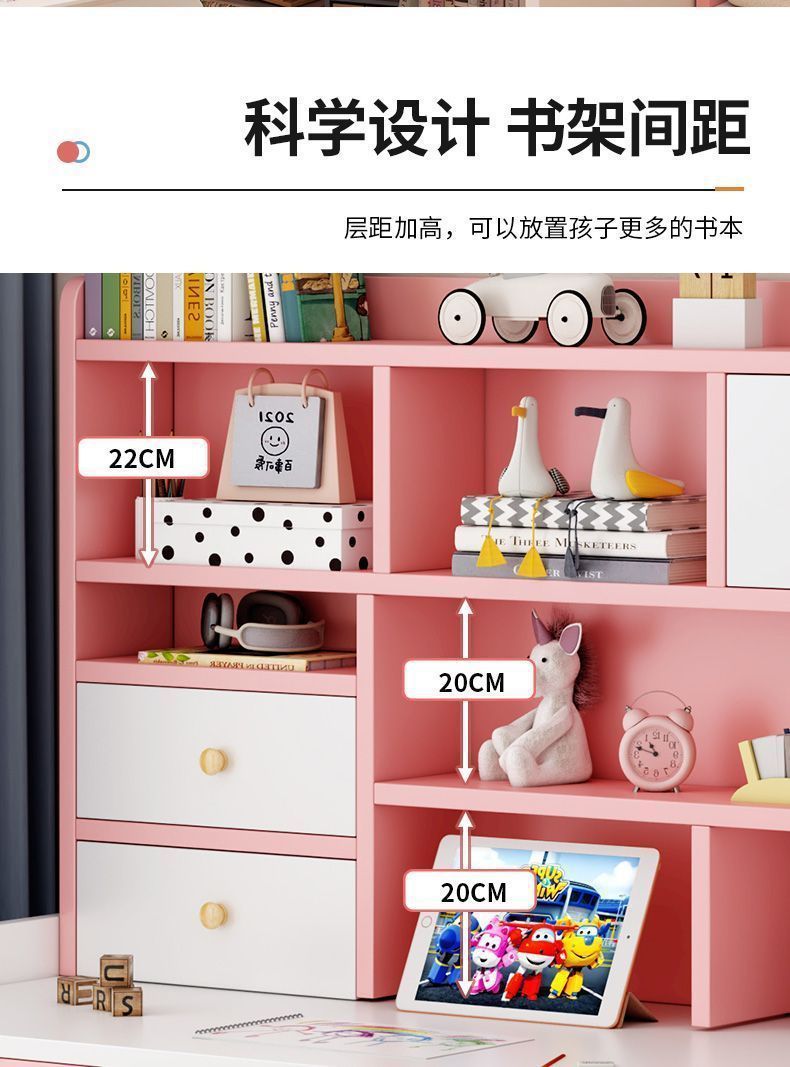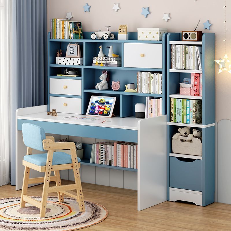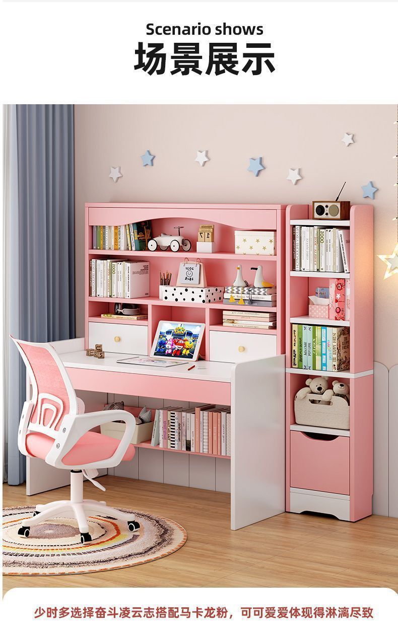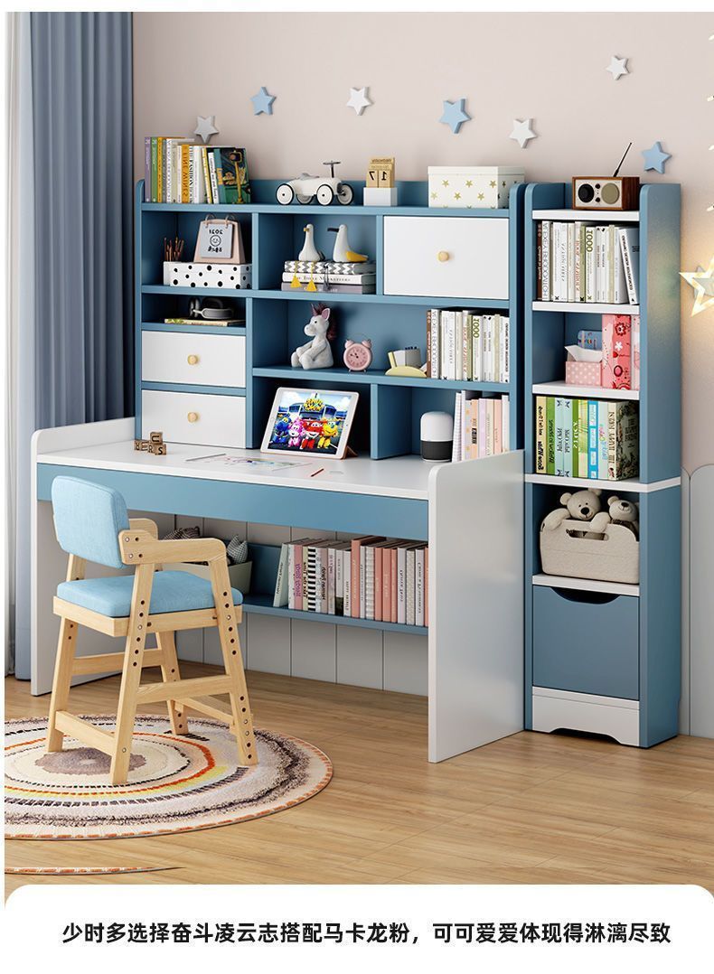 中学生の机と本棚の一体テーブル高校生の家庭用コンピュータデスクの子供は字を書くことを学びます。