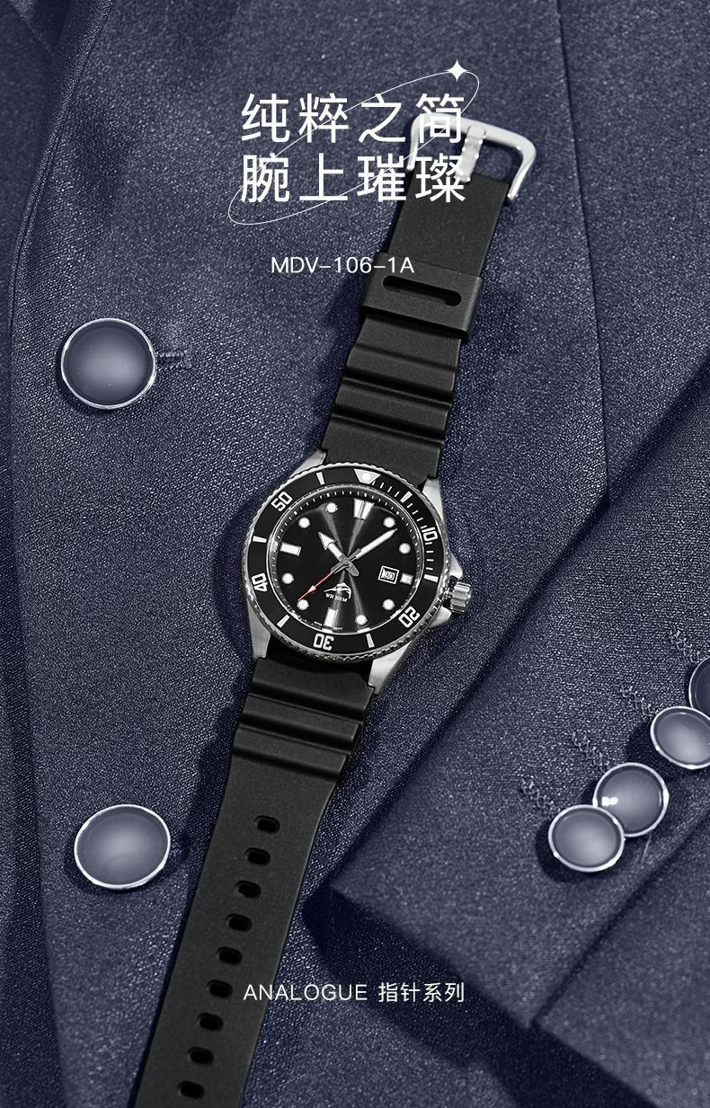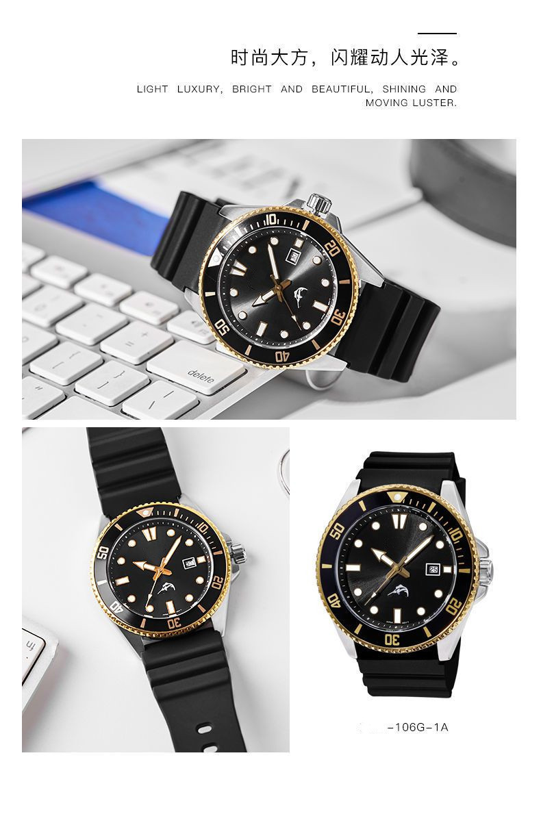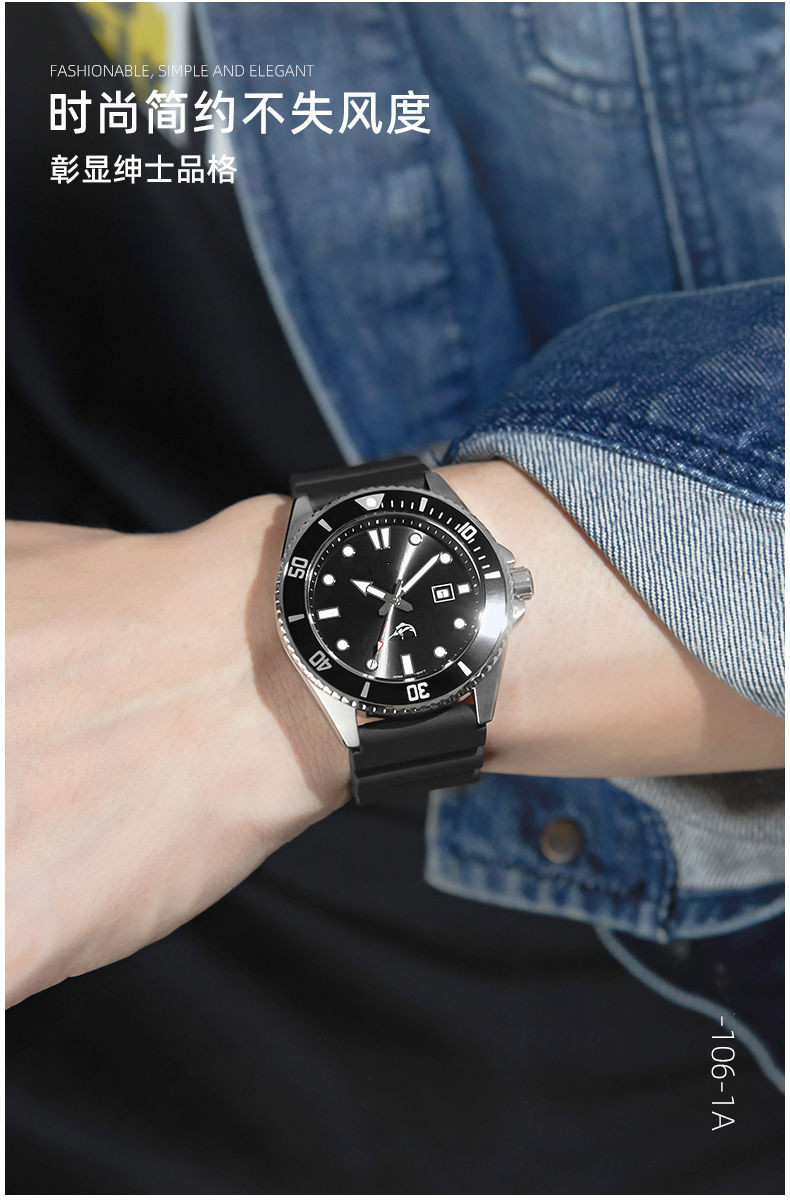 男性腕時計剣魚同項西ヨーロッパ系腕時計防水夜光指針運動シリコンバンド学生時計スポット