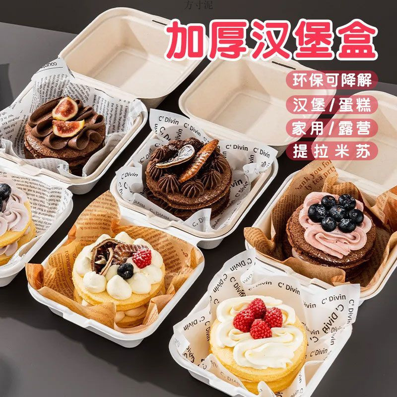 厚いケーキ箱ハンバーガーティラミスパルプ箱使い捨てデザート分解可能弁当箱卸売り