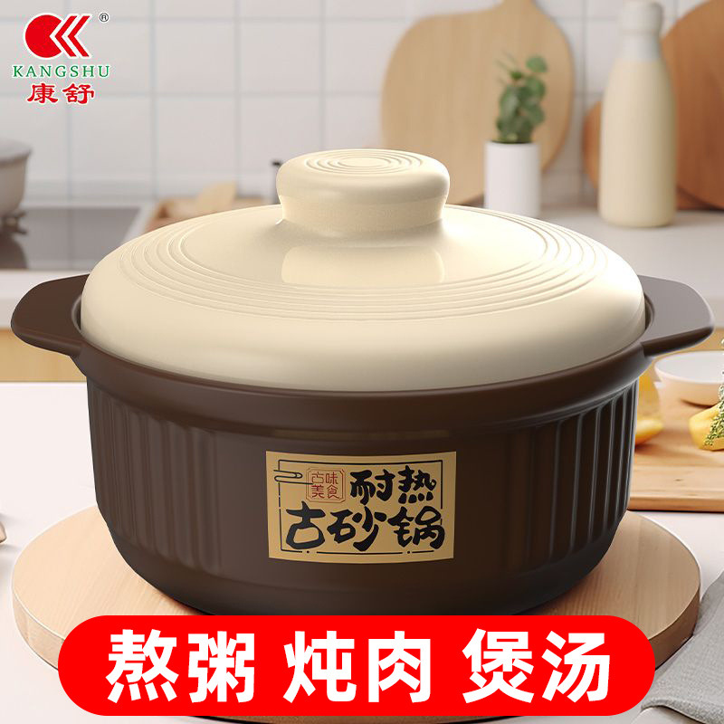 康舒土鍋スープ鍋煮込み鍋磁器鍋家庭用大容量耐高温明火直焼ガス土鍋粥鍋缶