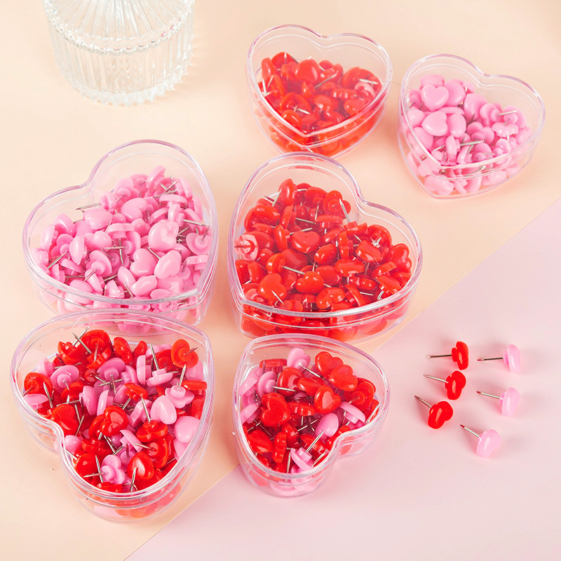 新しい国境を越えたカラーハート型プラスチック画鋲クリエイティブ少女ピンク工字釘DIYコルク板釘50枚/箱