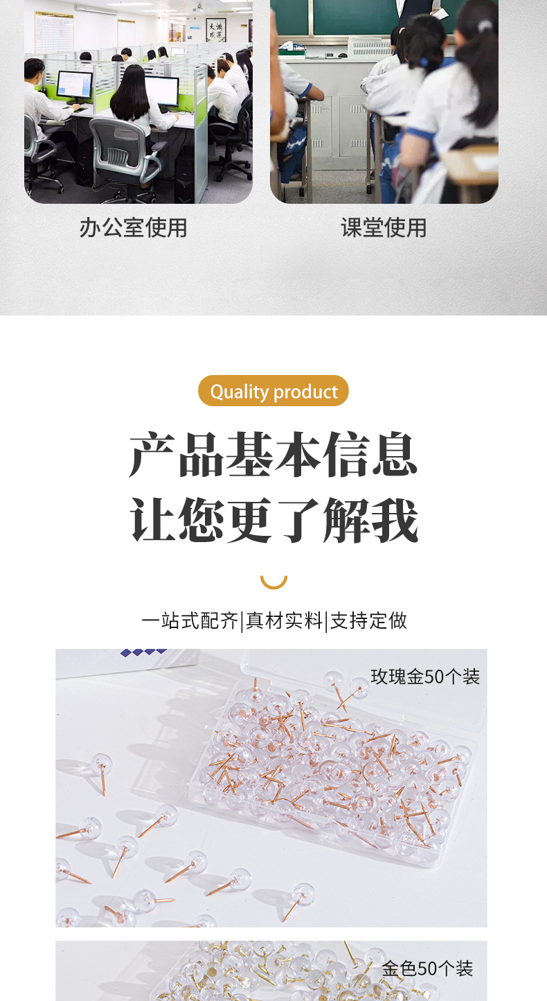 クリエイティブボール画鋲クロスボーダー金色工字釘DIYコルク板会議通知固定釘100個/箱