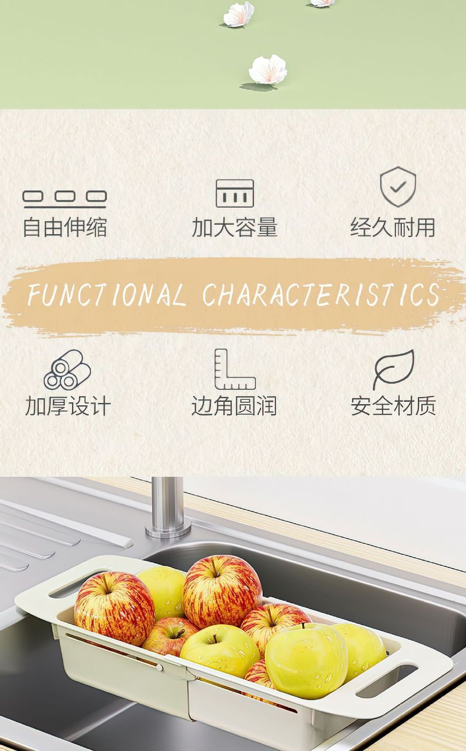 商品番号 二層伸縮式水切りバスケット ホワイトグリーン