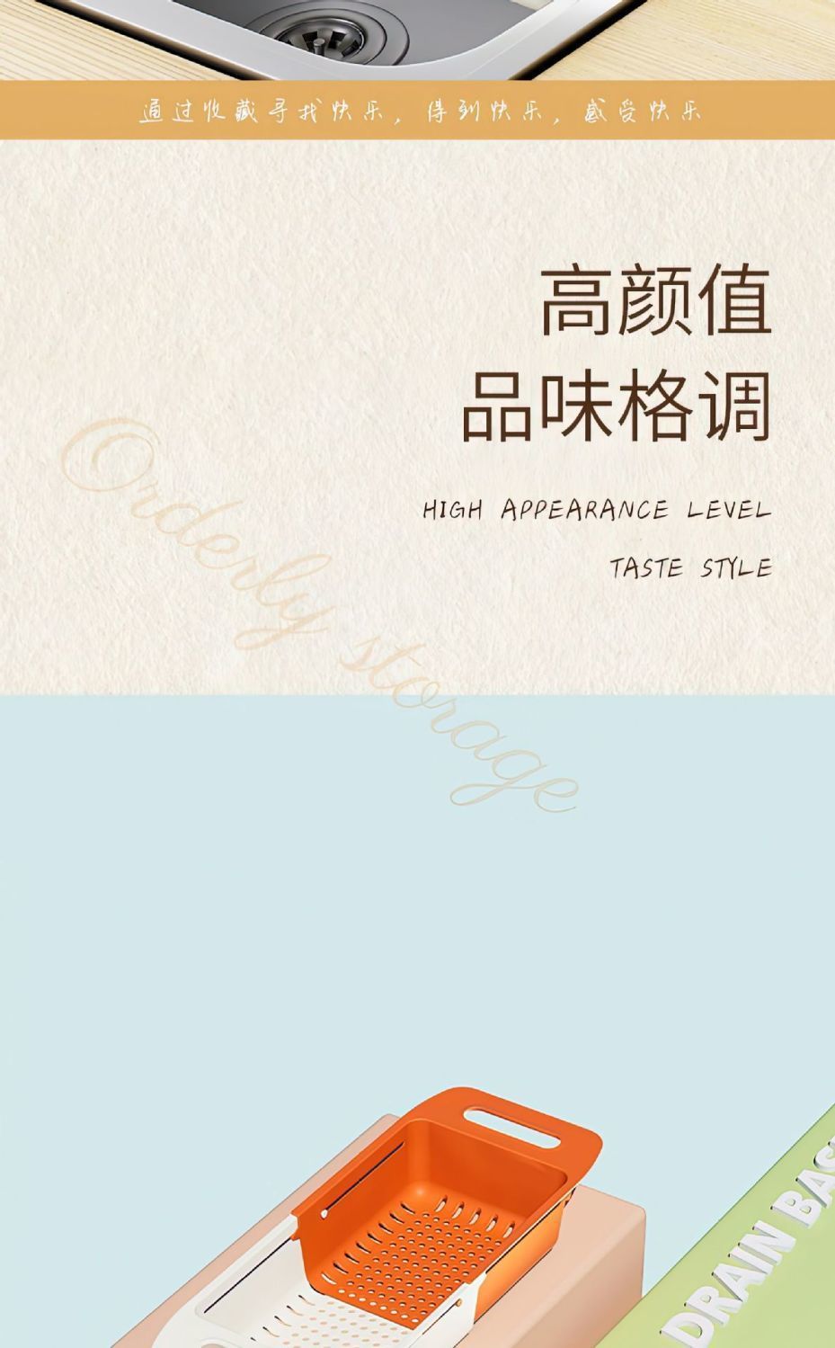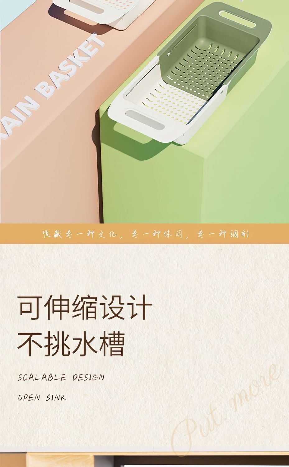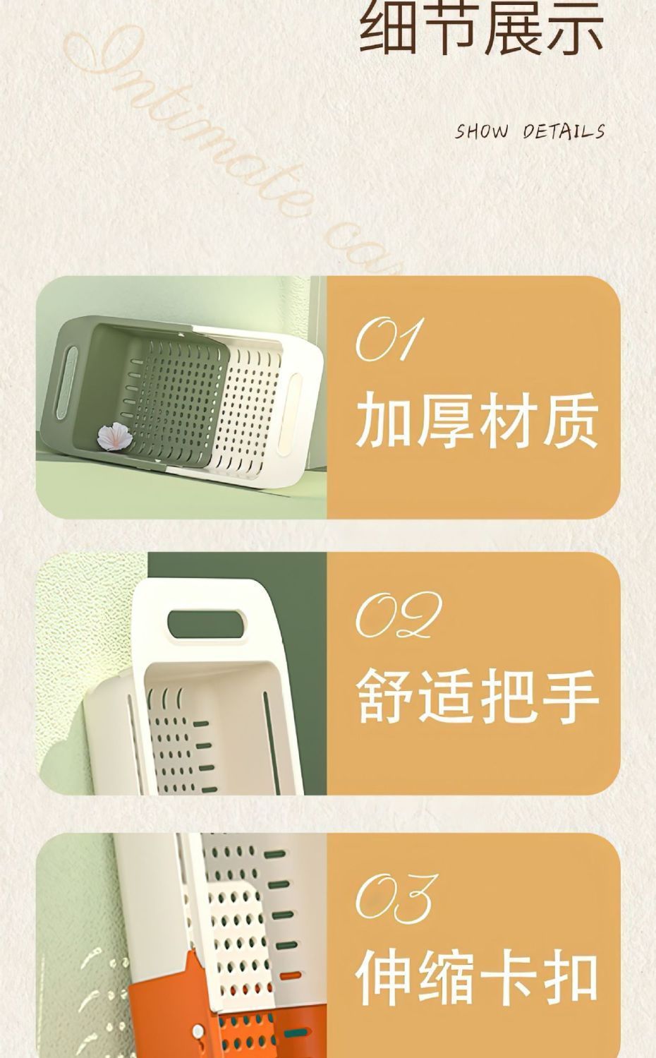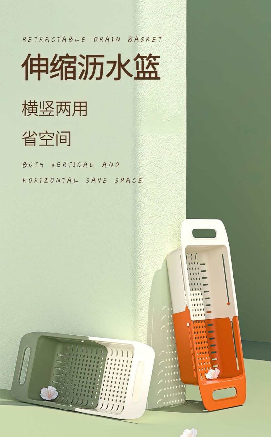 仕様 二層伸縮式水切りバスケット ホワイト オレンジ,二層伸縮式水切りバスケット ホワイトグリーン